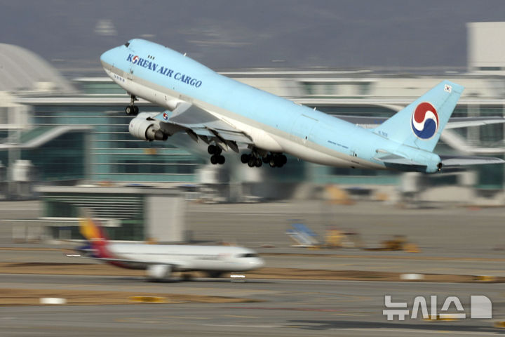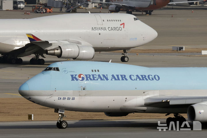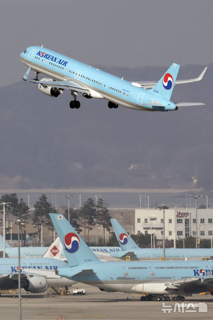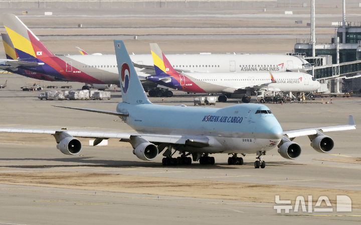 大韓航空は12日から、アシアナ航空の最大株主になる。写真は11日、仁川国際空港展望台から眺めたエプロン内の大韓航空の様子。