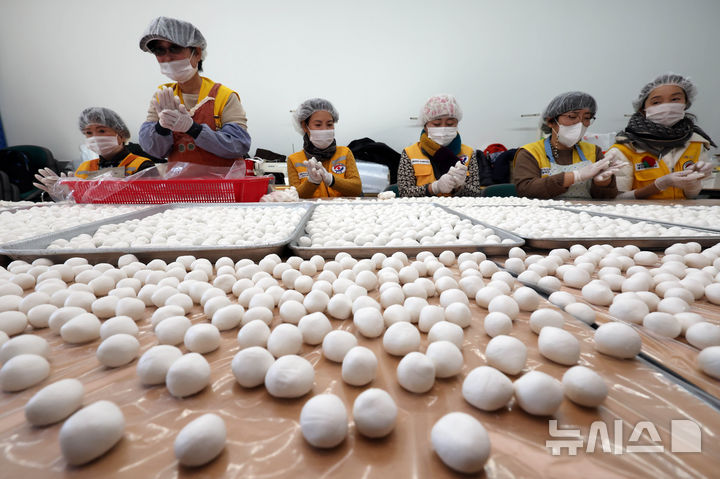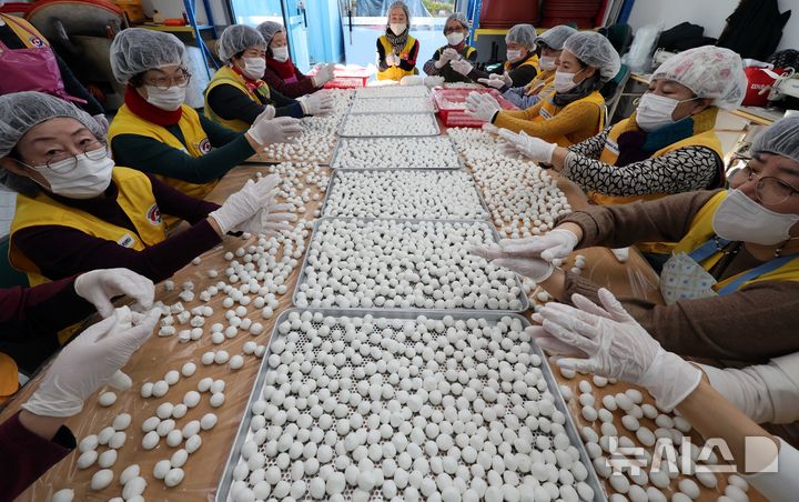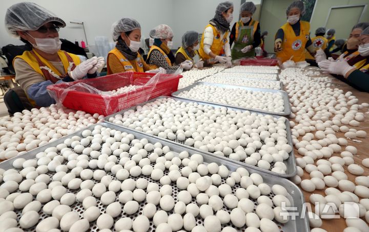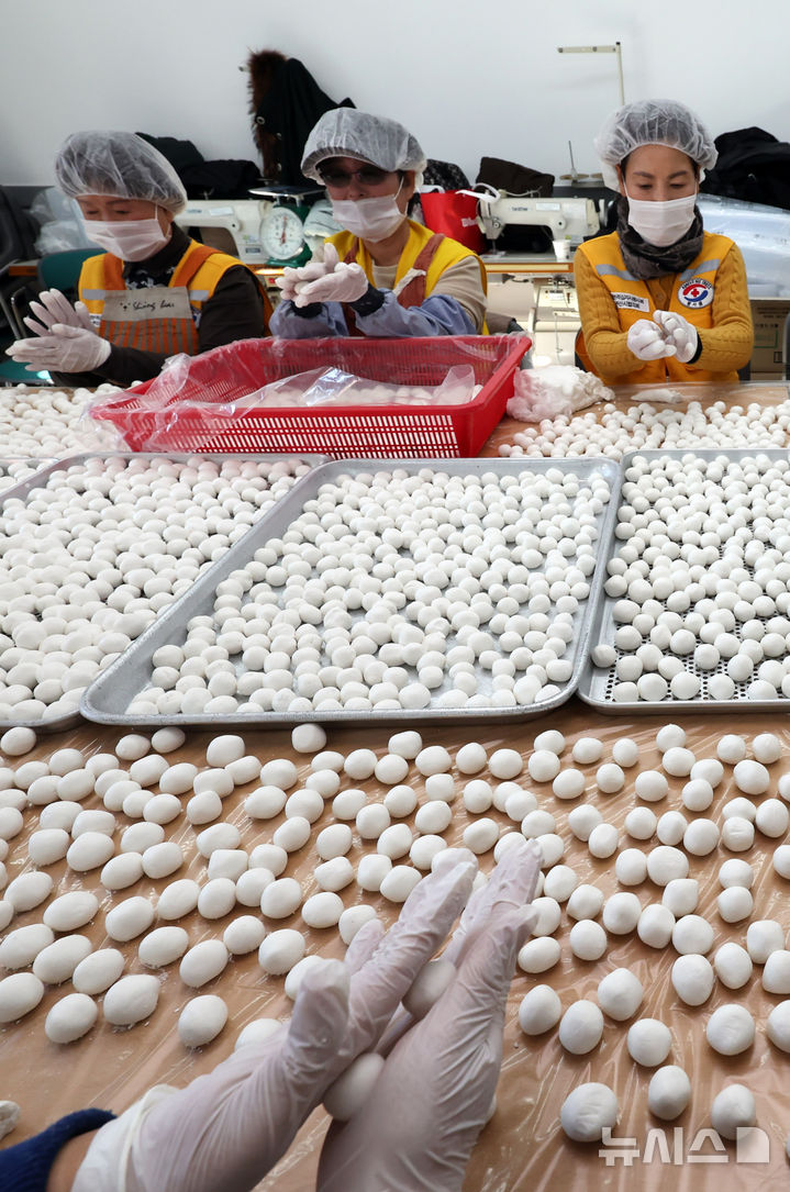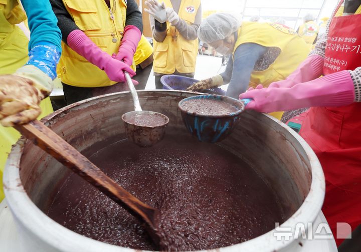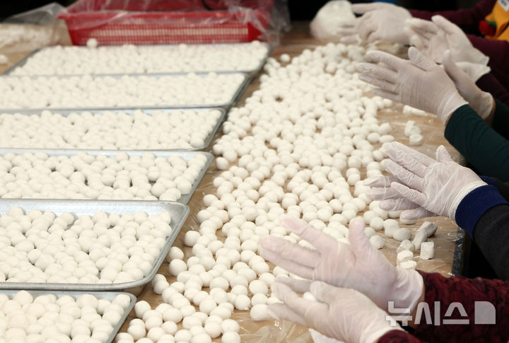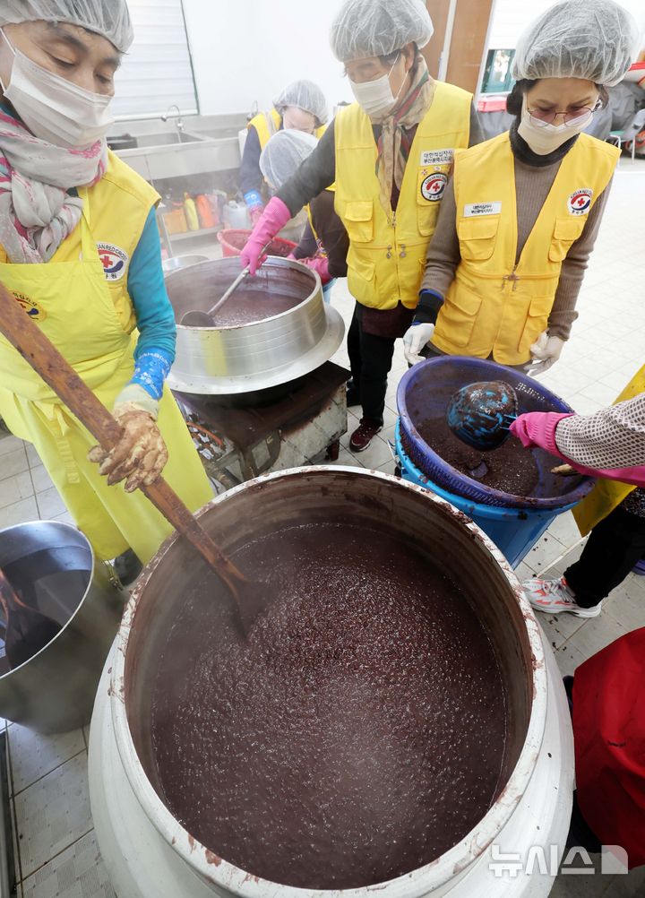 一年のうち最も夜が長く最も昼が短いとされる冬至を二日後に控えた19日、釜山市内の機張郡農業技術センターで、大韓赤十字社奉仕会機張郡地区協議会所属のボランティアメンバーたちが冬至に食べる小豆がゆに入れる白玉だんごをつくっていた。この奉仕会では、600人分の小豆がゆをつくって地域の高齢者や恵まれない人たちに配る予定だ。