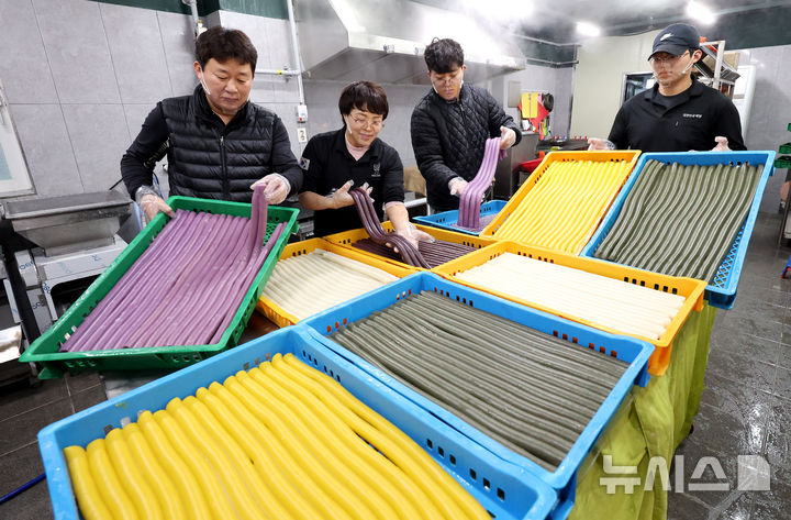 【NEWSIS】旧正月(今年は1月29日)が近い20日、大邱市達西区大谷洞の「大韓民国トック房」では、従業員が五色カレトック(細長い棒状の餅)を選んで包装の準備をしていた。