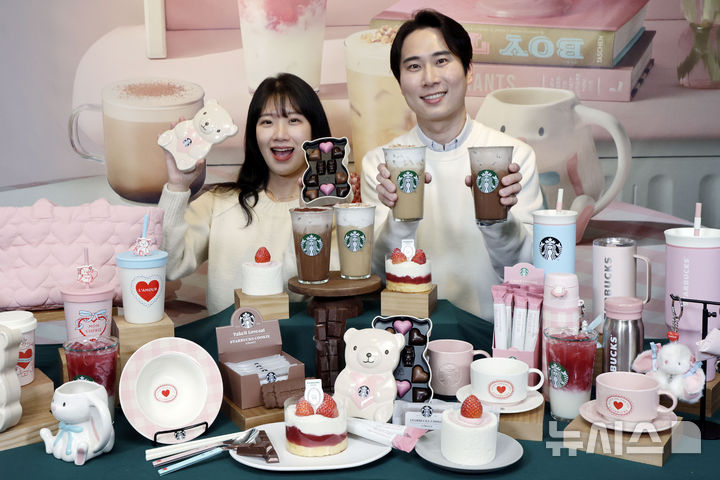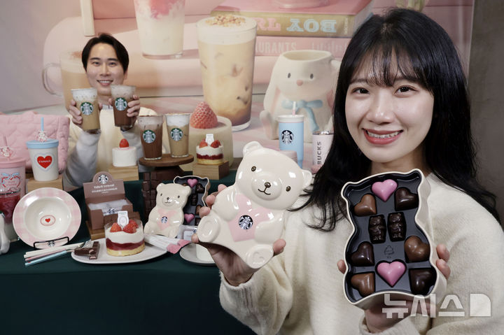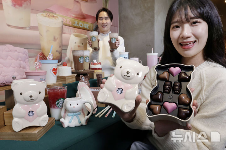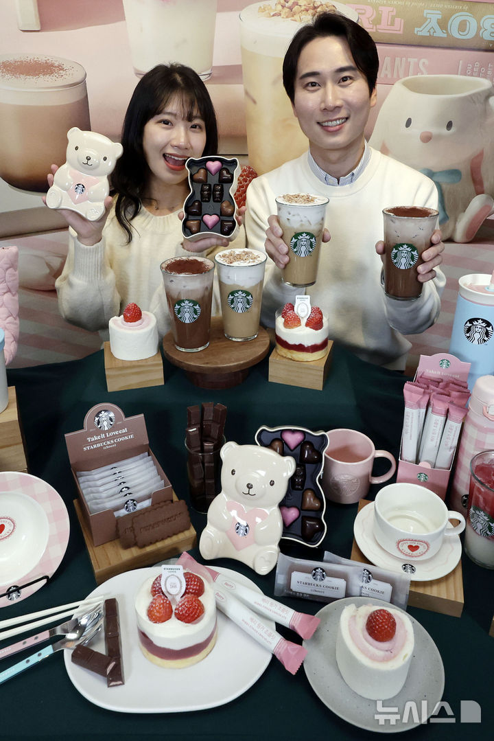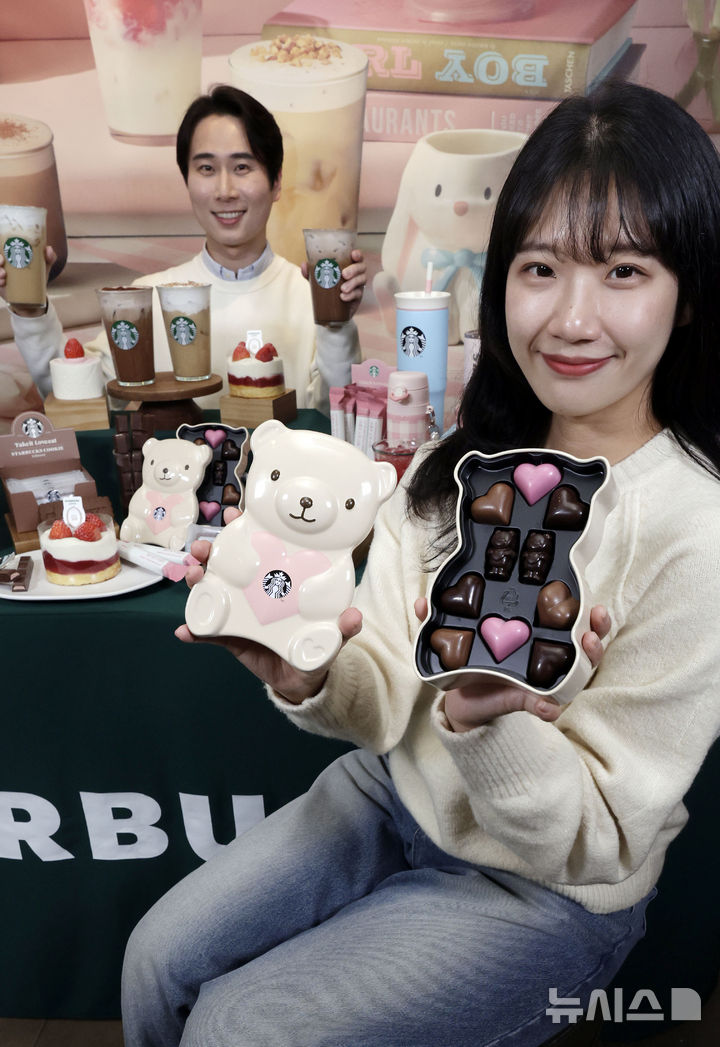 【NEWSIS】スターバックス・コリアでは5日、バレンタイン・シーズンを迎えるにあたり、ソウル市中区の韓国プレスセンター店で「スウィーティー・ベア・チョコレート」「アーモンド・クリーム・オーツ・ラテ」などのフードやドリンクの発売をPRした。