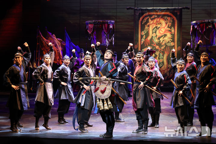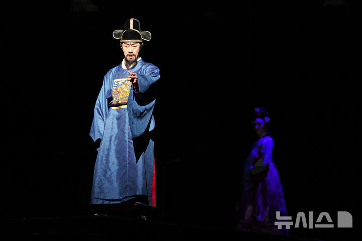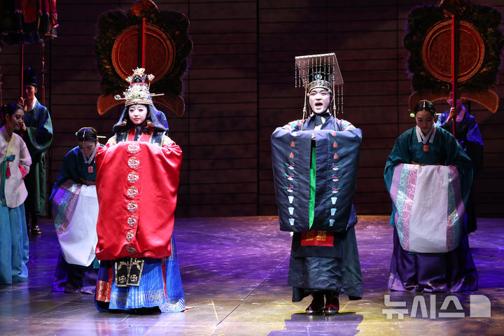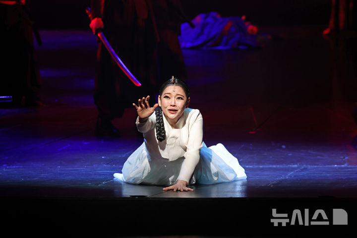 【NEWSIS】ミュージカル『明成皇后』でタイトルロールを演じるキム・ソヒョンとキャストが4日、ソウル市鍾路区の世宗文化会館で、主な場面の試演をしている様子。