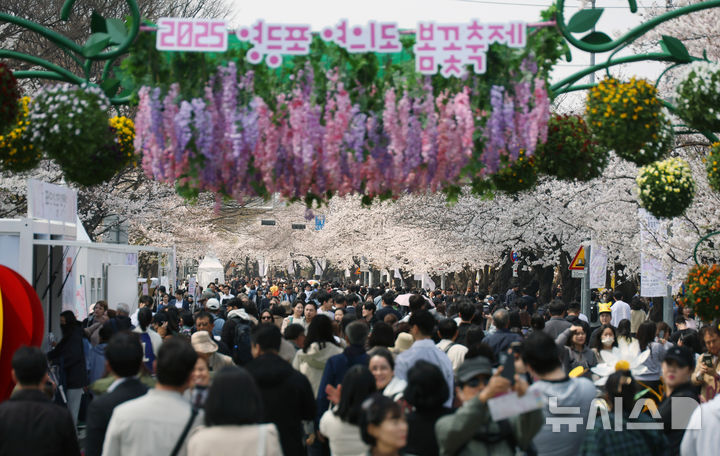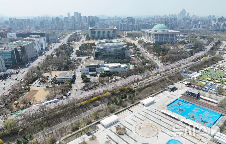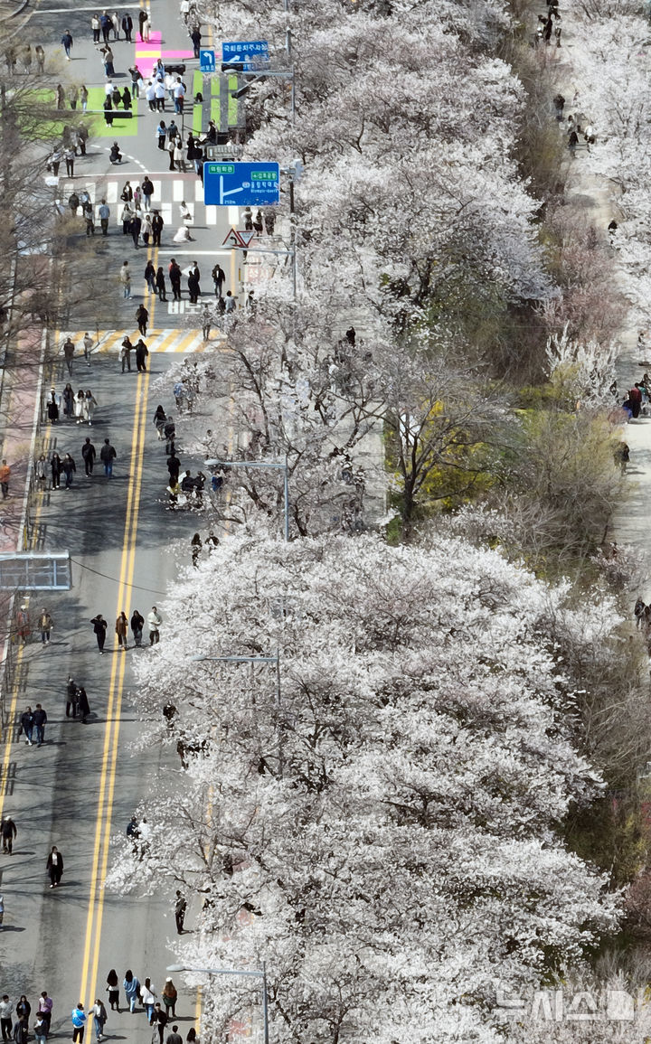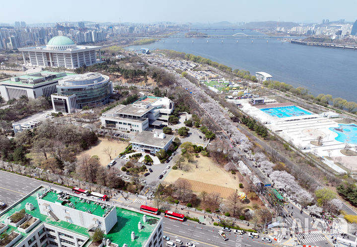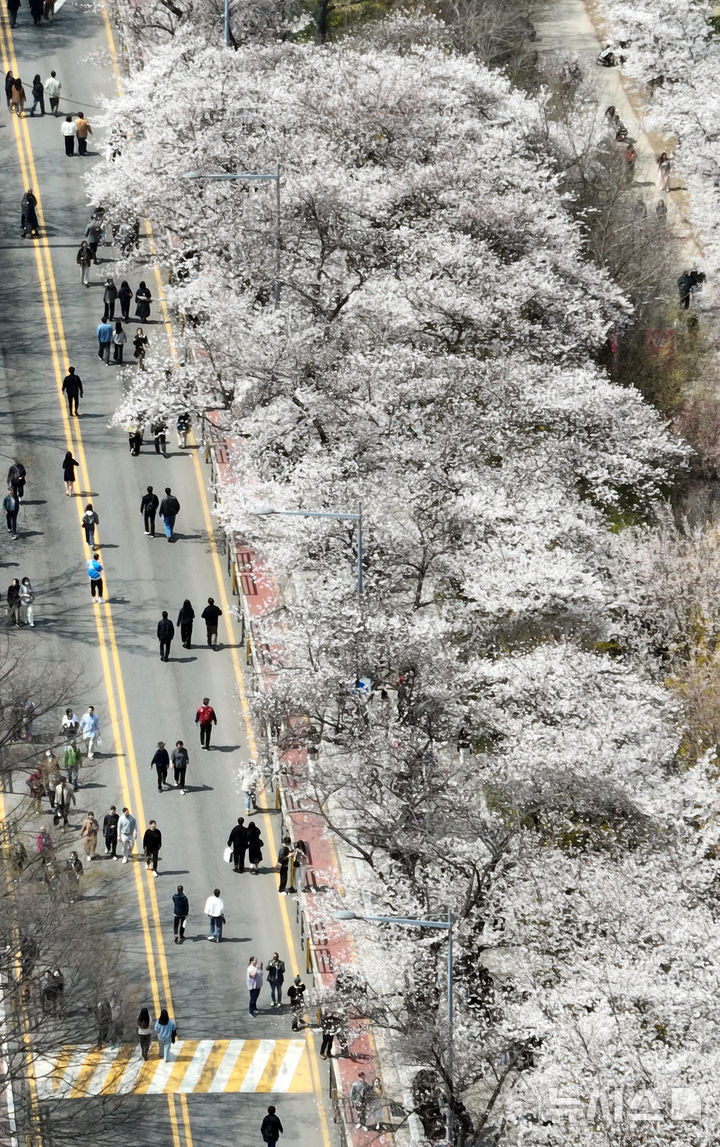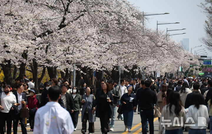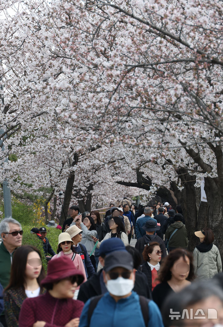 【NEWSIS】8日、ソウルの汝矣西路のサクラ並木一帯では、サクラをはじめ春の花々が満開になっていた。