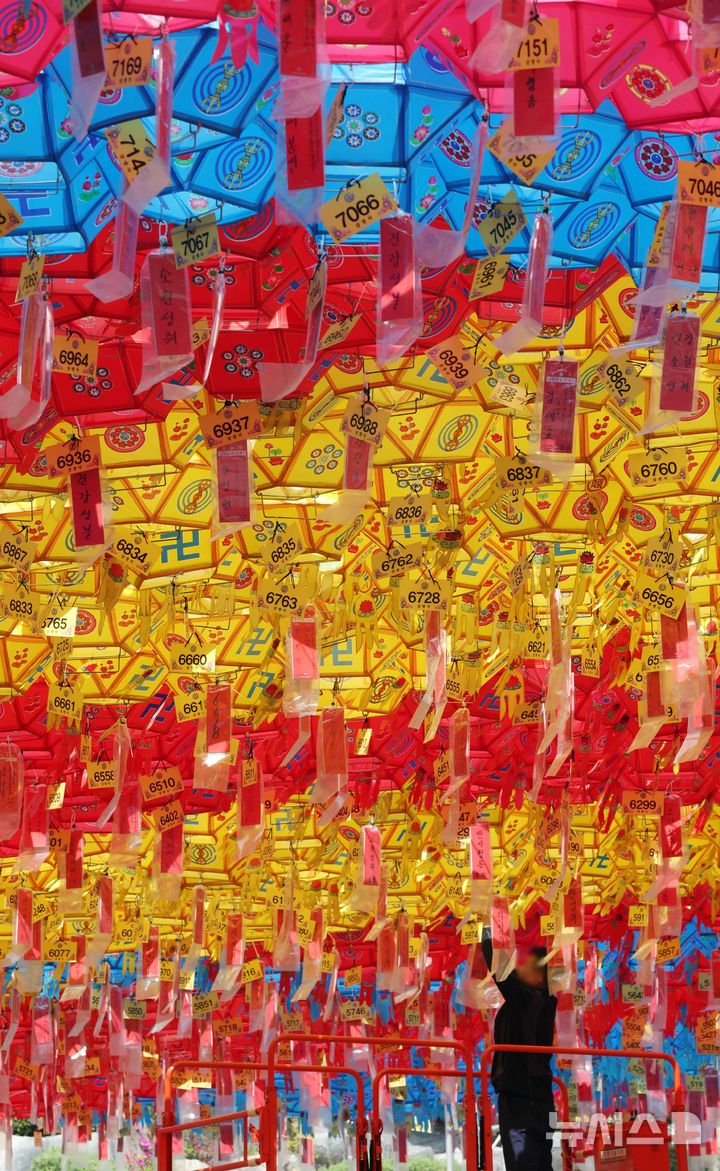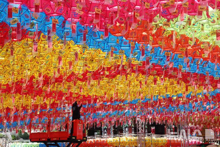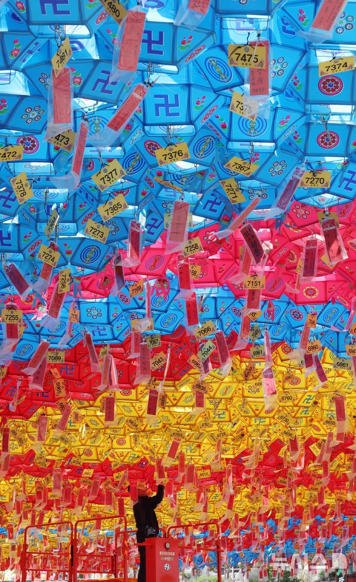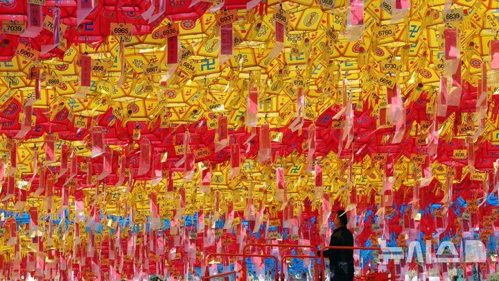 釈迦生誕日が近いことを受けて境内におよそ7万個のランタンを設置した三光寺は、今月12日に「奉祝点灯大法会」を行った後、およそ1カ月にわたりランタンを灯し続ける予定だ。