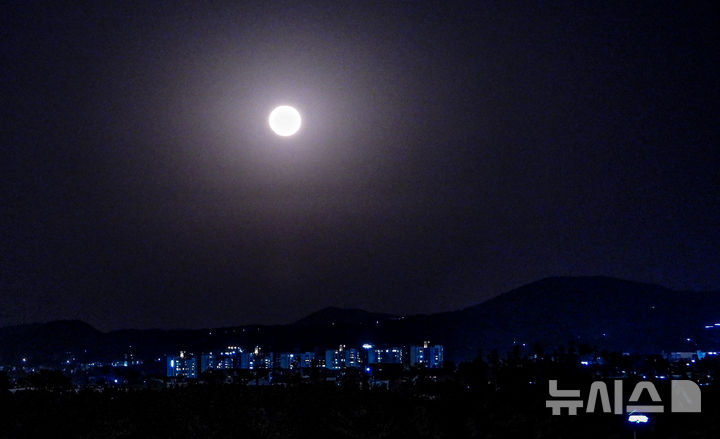 【NEWSIS】13日午後、済州市内の東の空に、地球から最も遠く離れた地点に到達し、少し小さく暗く見える満月「マイクロムーン」が浮かんだ。また、4月の満月は「ピンクムーン」と呼ばれている。