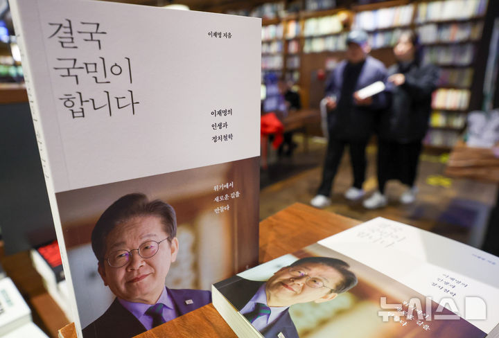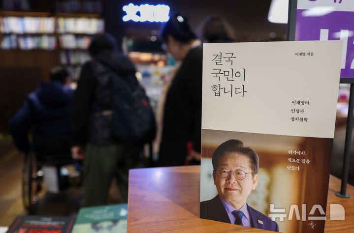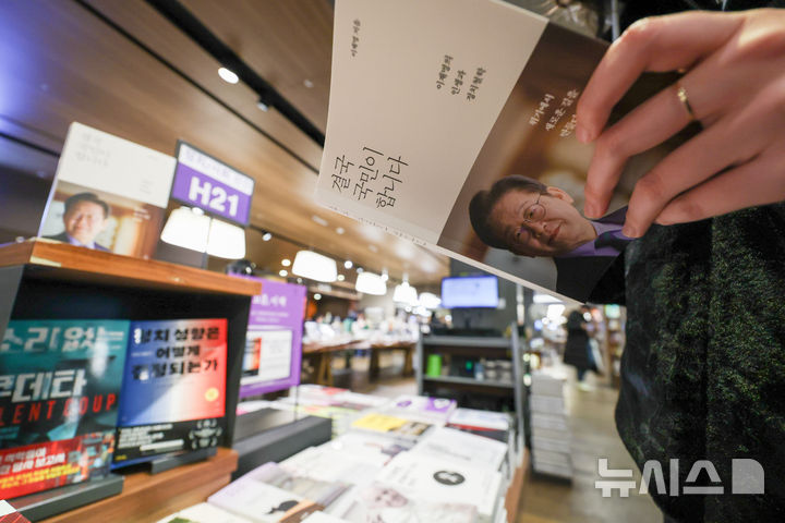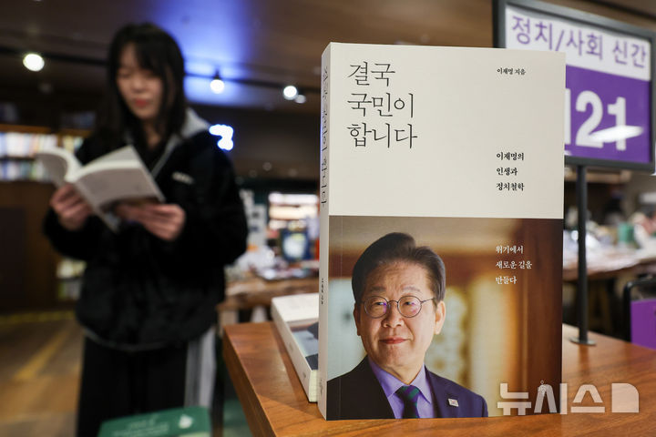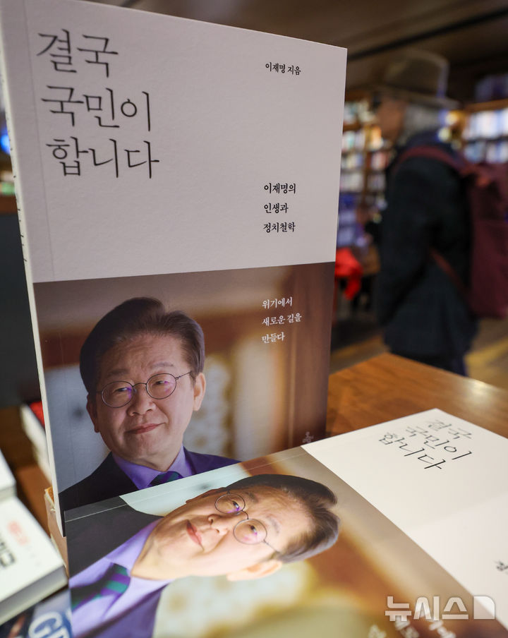 【NEWSIS】14日午後、ソウル市鍾路区の書店大手「教保文庫」で、進歩(革新)系最大野党「共に民主党」の李在明(イ・ジェミョン)前代表の著書『結局、国民がやります』を手に取る市民の様子。