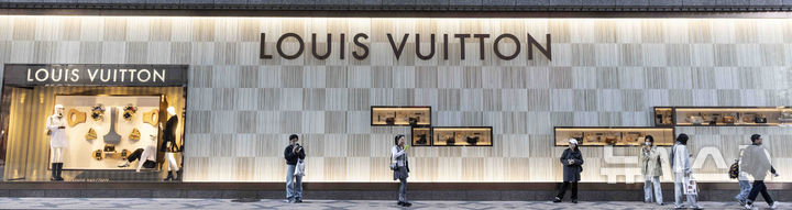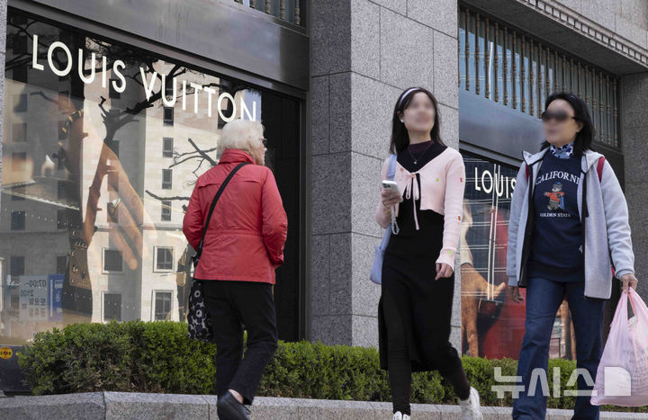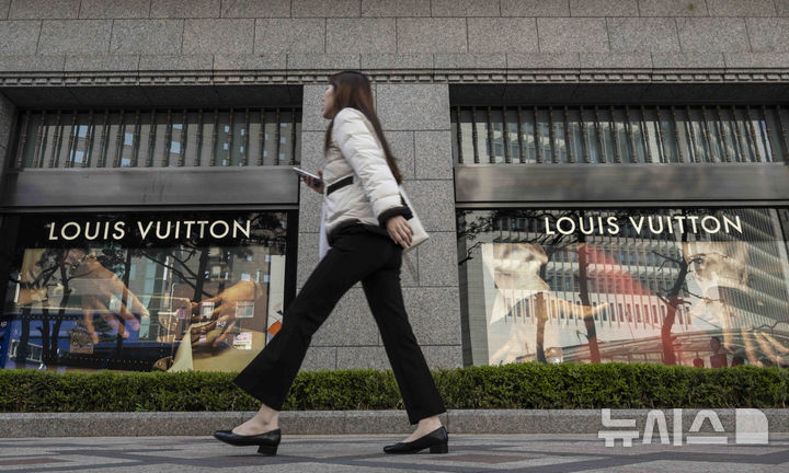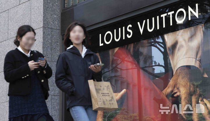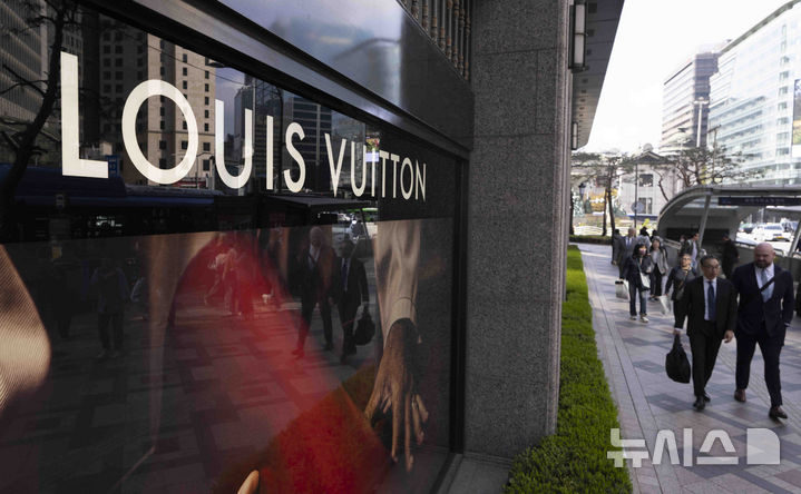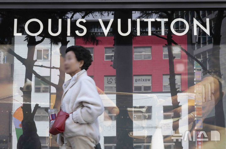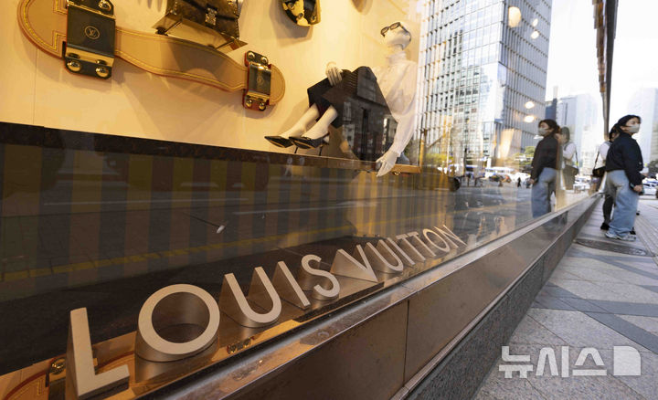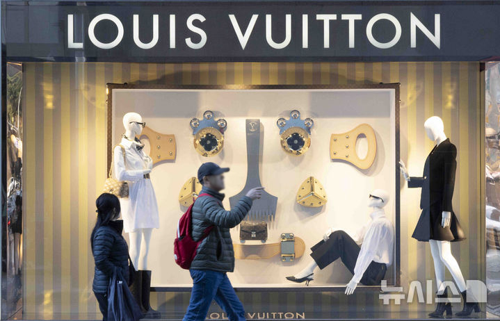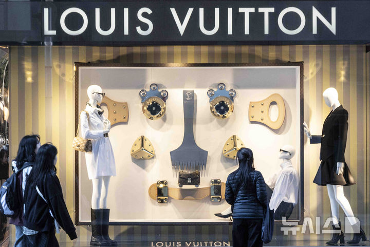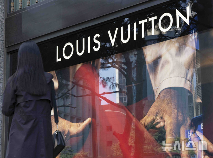 写真は15日、ソウル市内のデパートにあるフランスの高級ブランド「ルイ・ヴィトン」のショーウィンドーの様子。