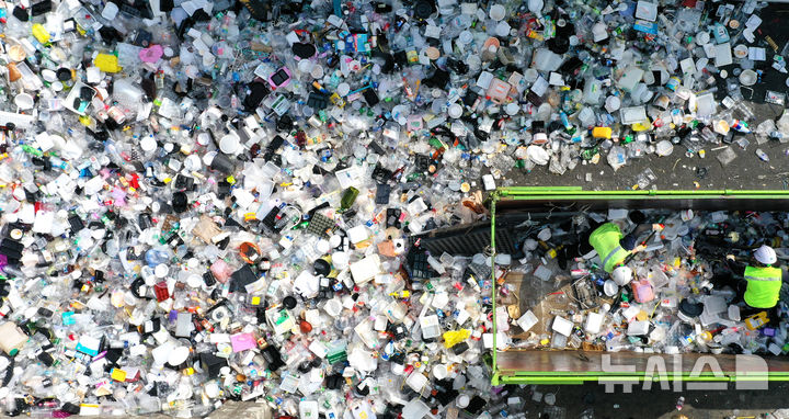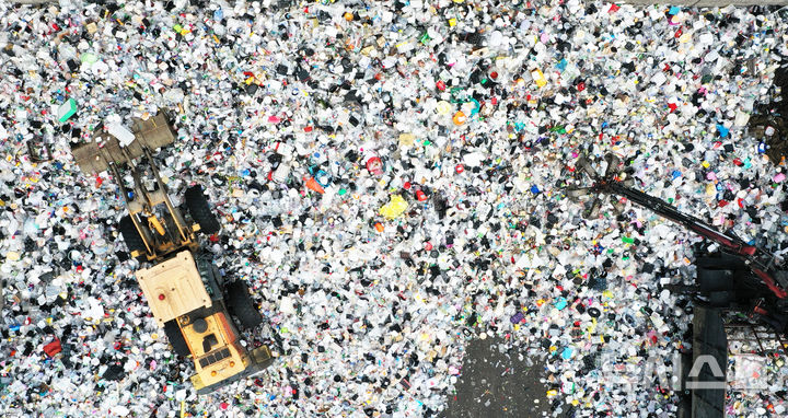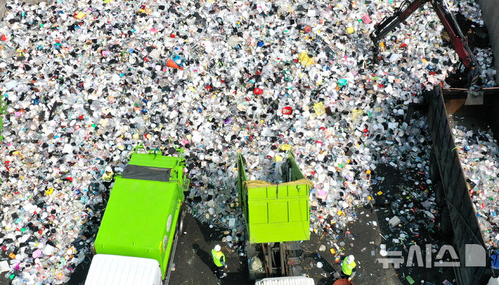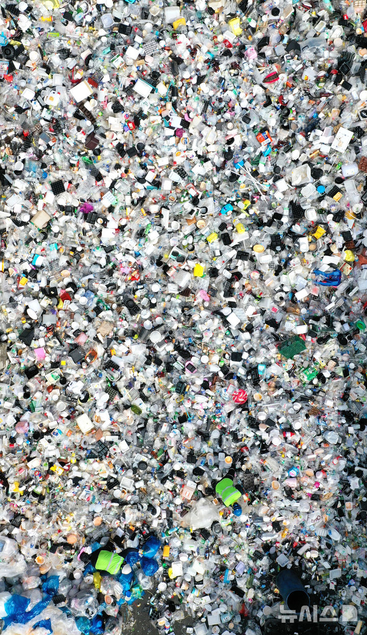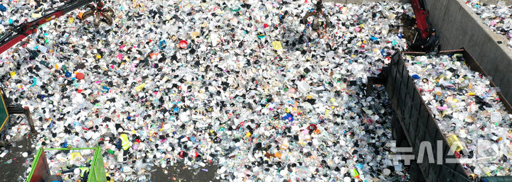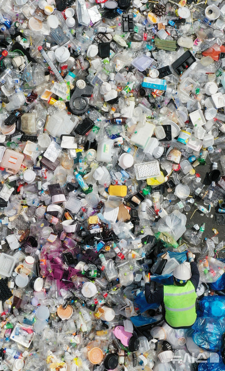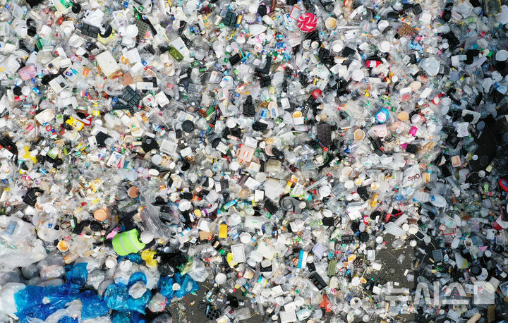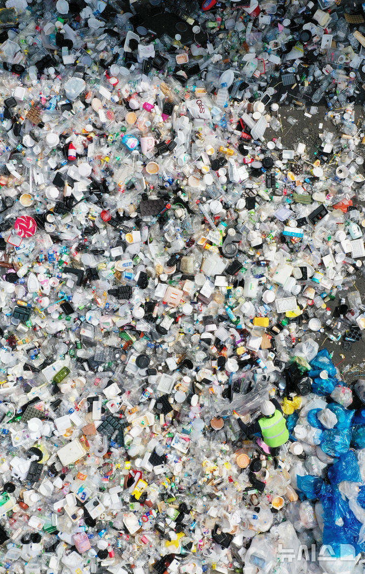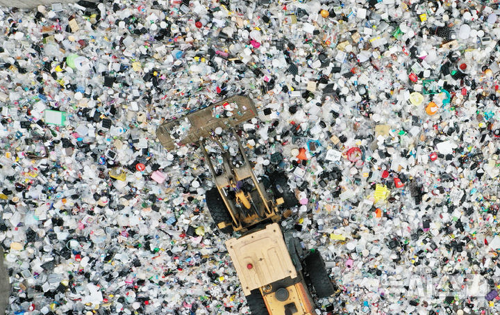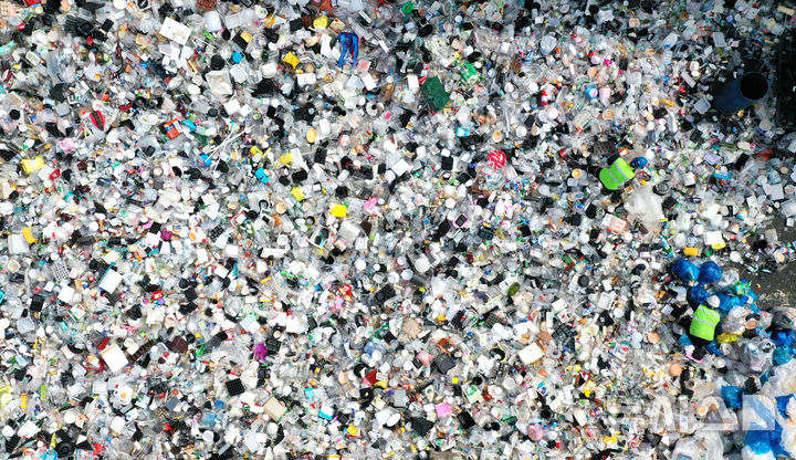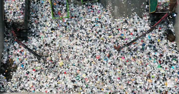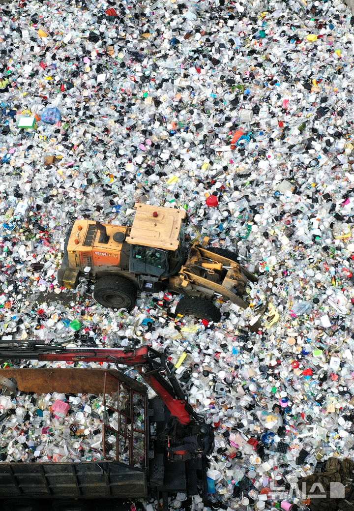 【NEWSIS】「アースデー」(4月22日)があすに迫った21日、京畿道水原市霊通区の水原資源循環センターには、各家庭から排出されたプラスチックごみなどが山のように積み上げらていた。