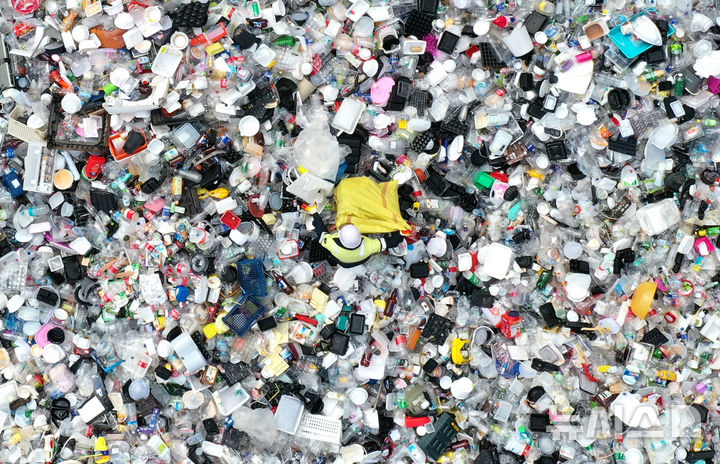 明日はアースデー…山のように積み上がったプラスチックごみ