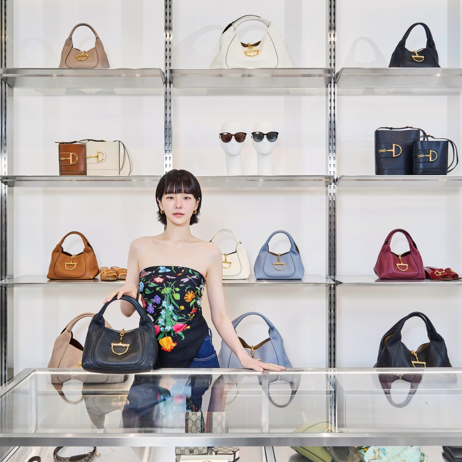 イタリアの高級ブランド「GUCCI」のグローバル・アンバサダーを務める女優パク・ギュヨンが4月28日、リニューアルしたギャラリア百貨店名品館WEST1階の「GUCCI」ショップを訪れた。
