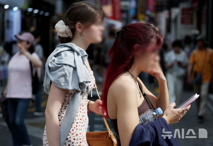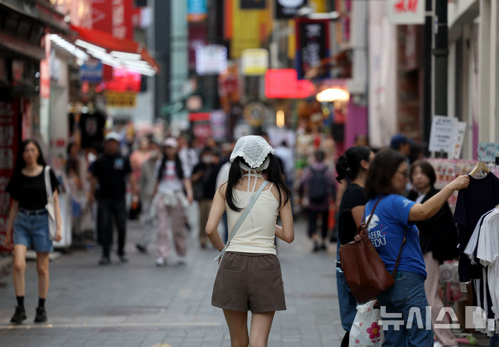 【NEWSIS】二十四節季の一つで夏の気温が到来し始める「小満」に当たる21日、ソウル市中区の明洞では、外国人が軽装で観光を楽しんでいた。