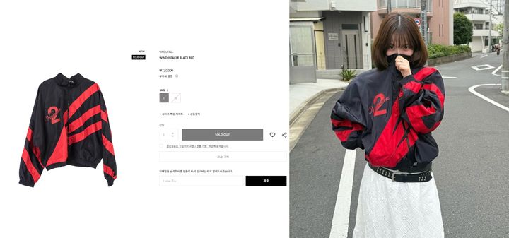このアイテムは、米国ニューヨーク発のファッションブランド「Vaquera」の「WINDBREAKER BLACK RED」だ。黒地に赤い斜線がプリントされており、赤い数字「2」が印象的なデザインだ。およそ72万ウォン(約7万5900円)と高価だが、公式オンラインショップでは現在、全サイズ売り切れとなっている。