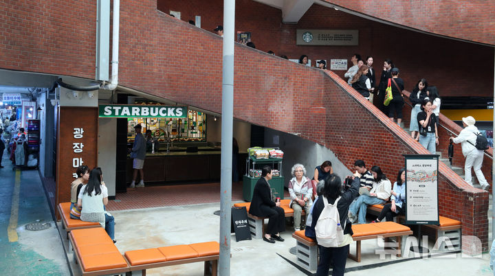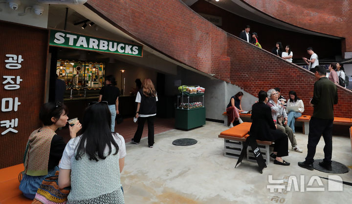 【NEWSIS】29日、ソウル市鍾路区のスターバックス広蔵マーケット店で、訪れた人々が対話を交わしている様子。