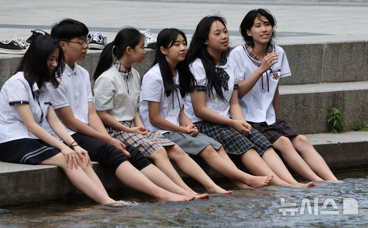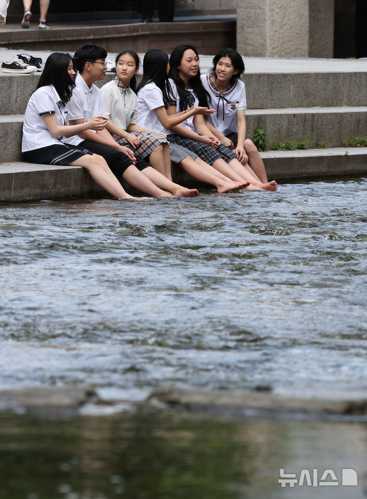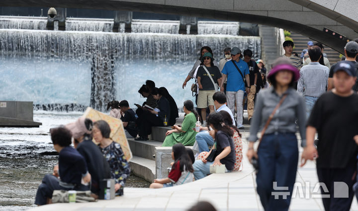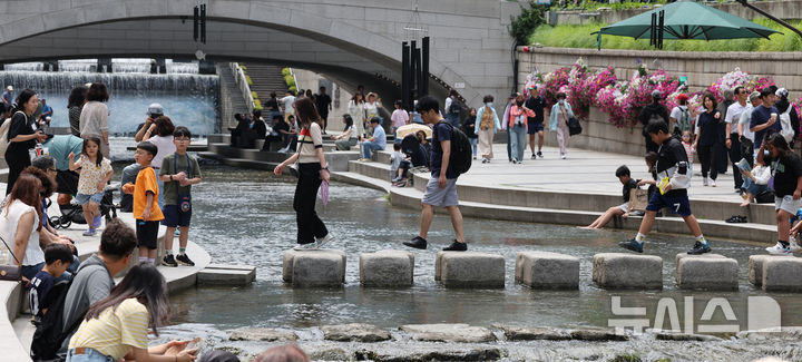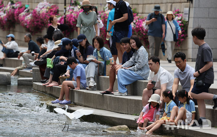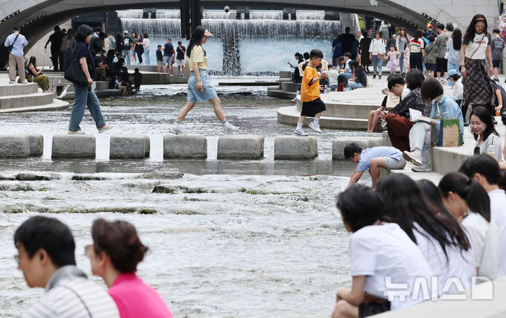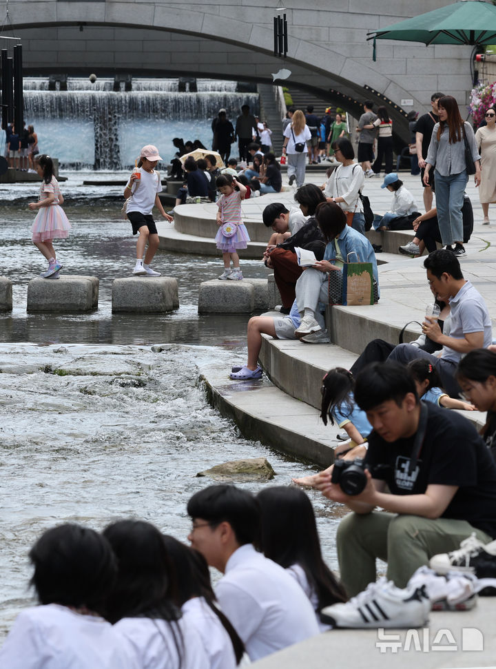 【NEWSIS】韓国大統領選挙投票日の3日、ソウル市鍾路区の清渓川では、投票を終えてきた市民が休息を取っていた。
