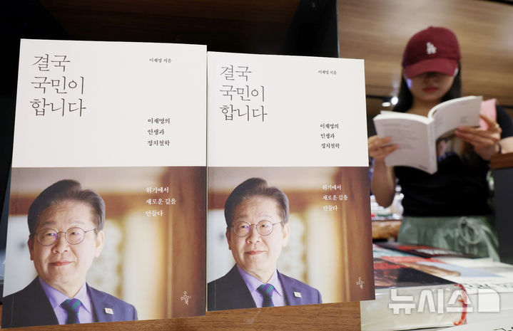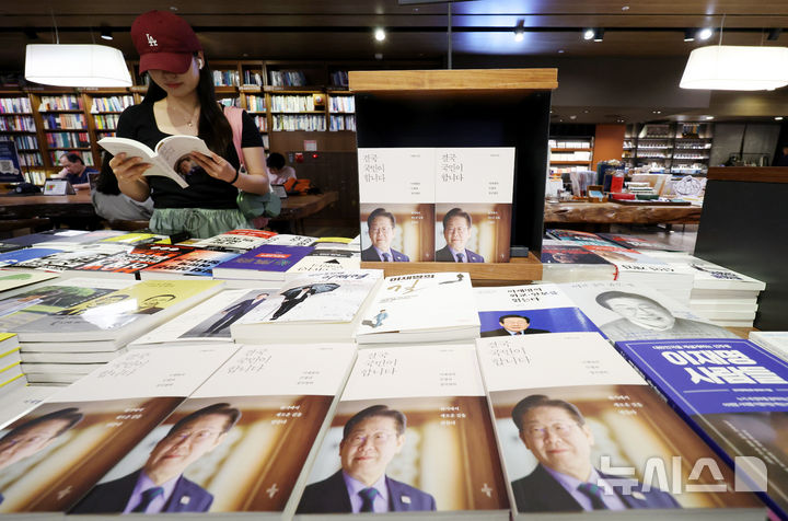 【NEWSIS】李在明(イ・ジェミョン)大統領の5年の任期が始まった4日、ソウル市鍾路区の書店大手「教保文庫」光化門店で、李在明大統領の著書『結局、国民がやります』を読んでいる市民。