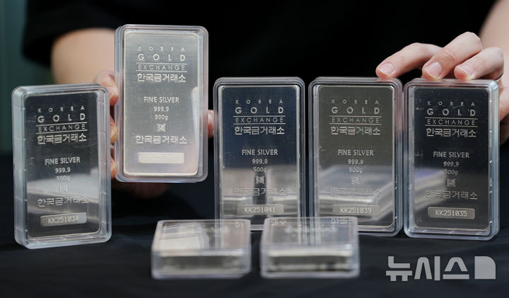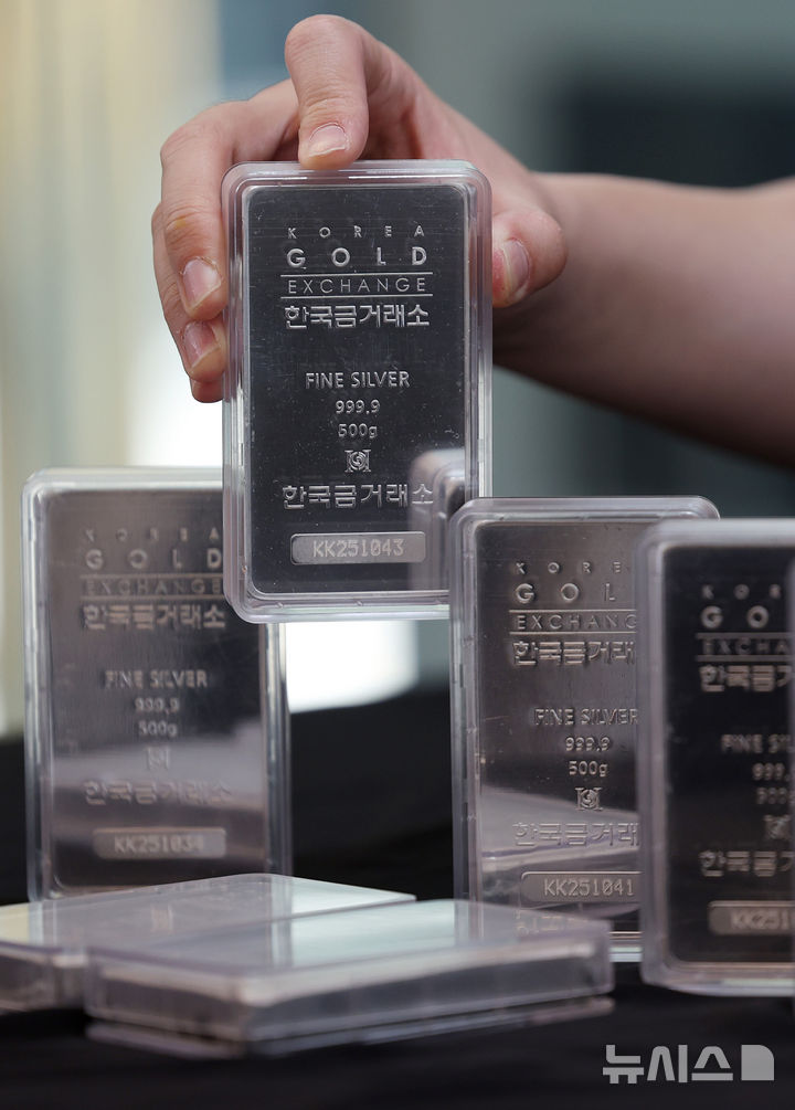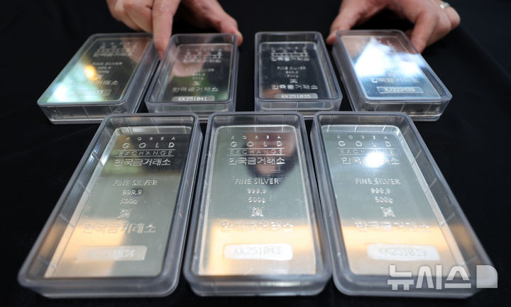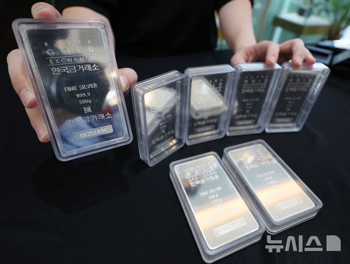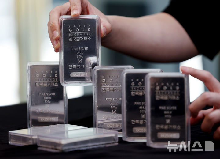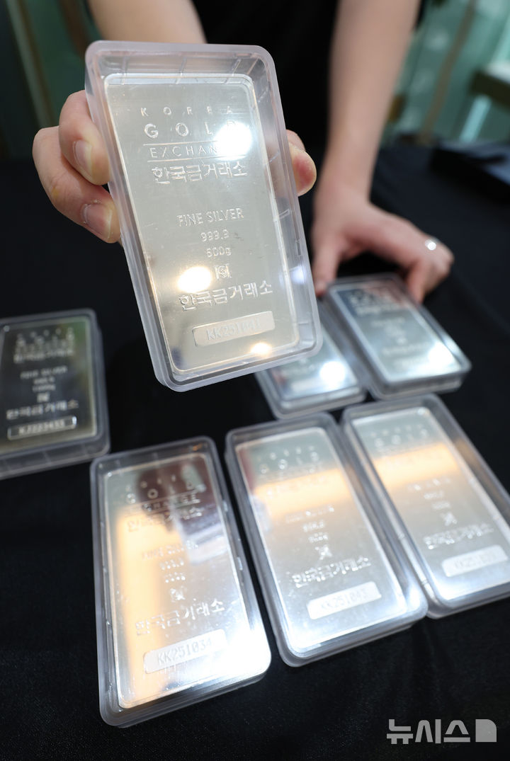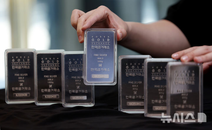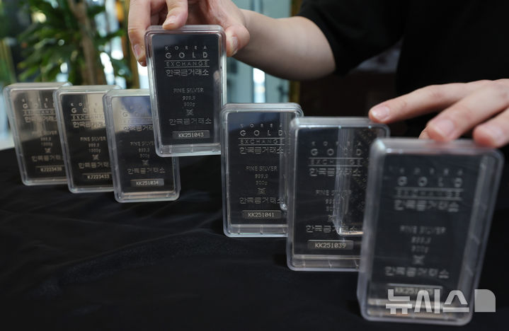 【NEWSIS】11日、ソウル市鍾路区の韓国金取引所に陳列されているシルバーバーの様子。