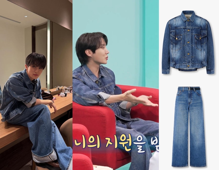 6月21日に放送されたバラエティー番組『全知的おせっかい視点』(MBC)にJ-HOPEが出演。J-HOPEはこの日、スタジオでデニムのジャケットとデニムのパンツのセットアップを身にまとい、おしゃれなデニム・オン・デニム・コーデを披露した。