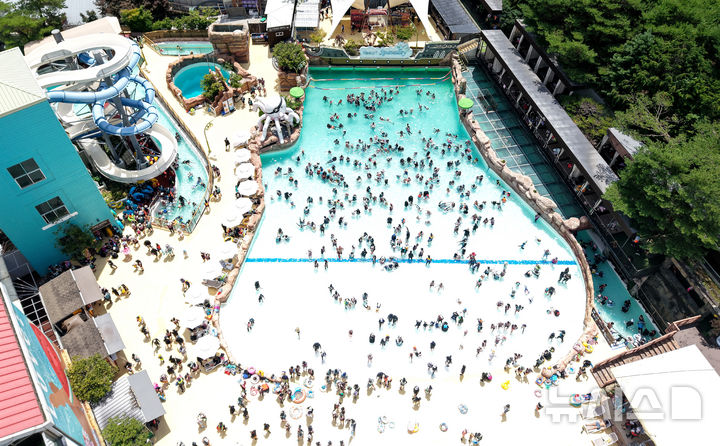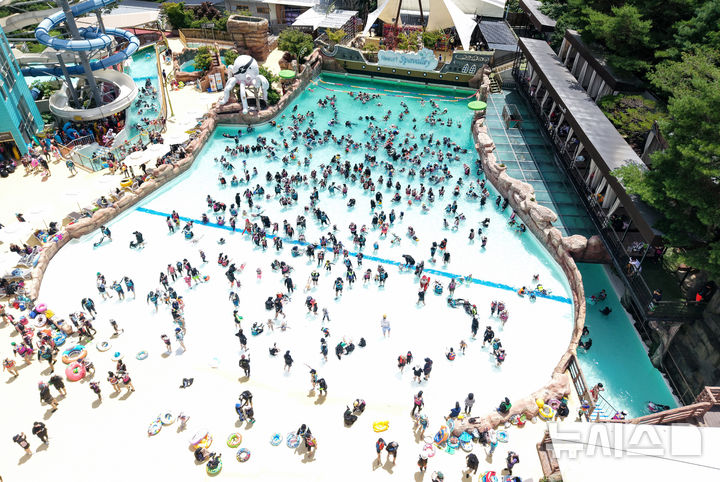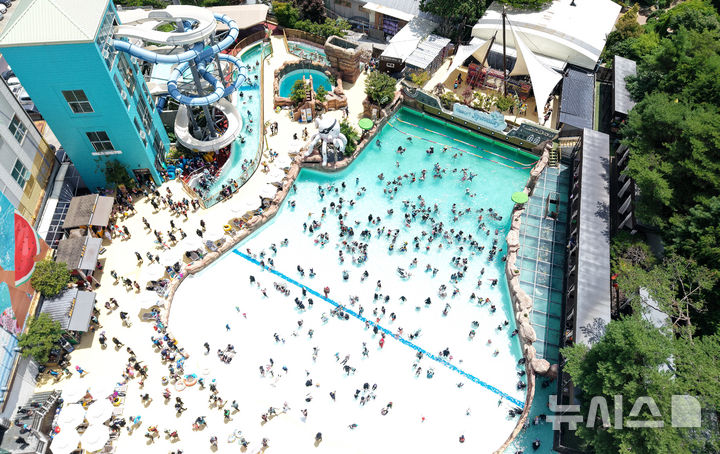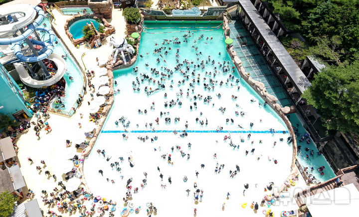 【NEWSIS】猛暑が続いた6日、大邱市達城郡のウォーターパーク「スパ・バレー」は、暑さを忘れて水遊びを楽しむ人々でにぎわった。