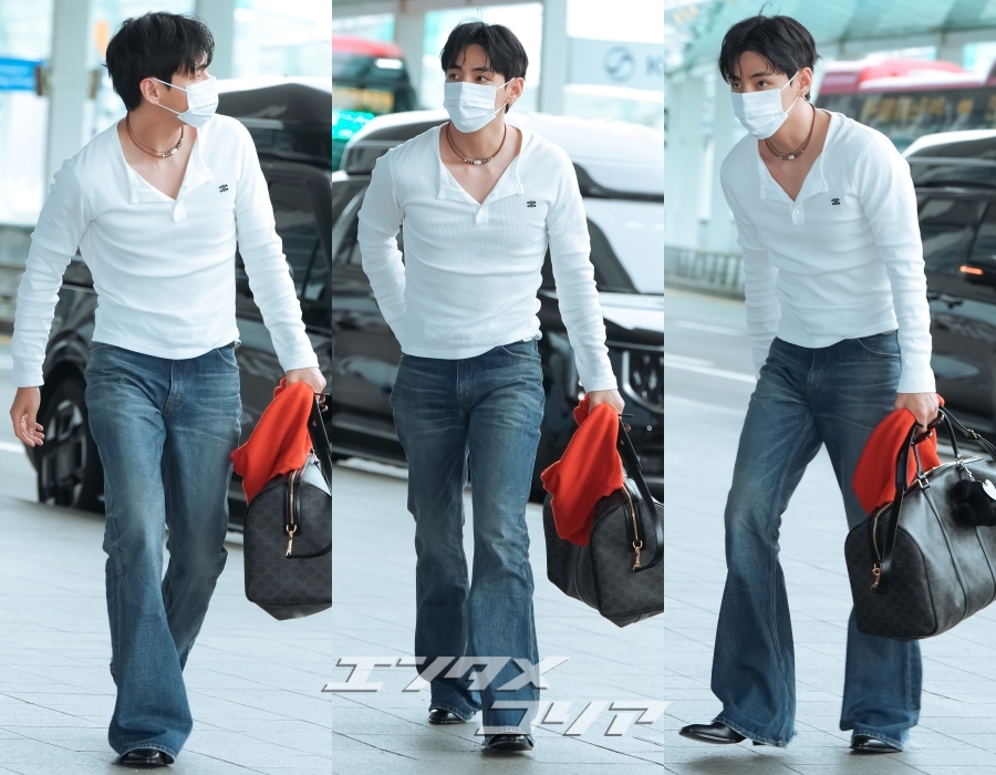 防弾少年団(BTS)のメンバー、Vが7月4日、海外でスケジュールをこなすため仁川国際空港に姿を見せた。