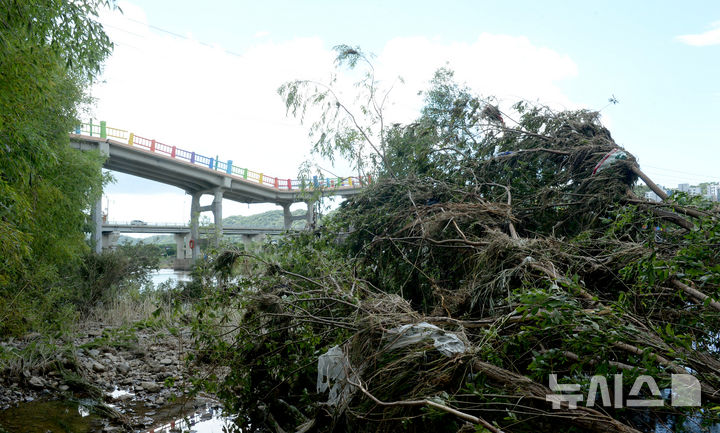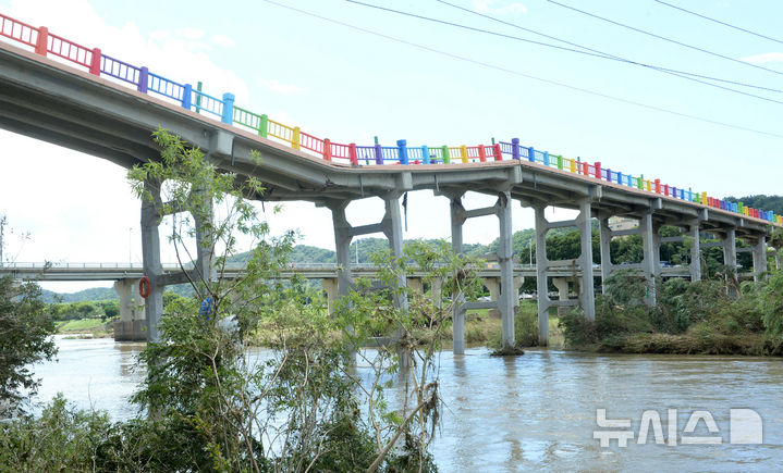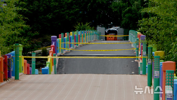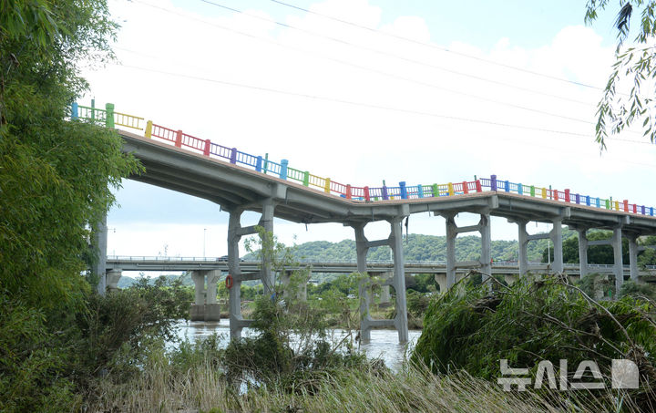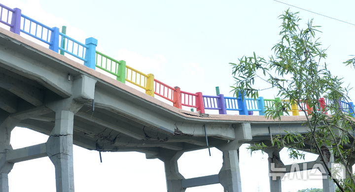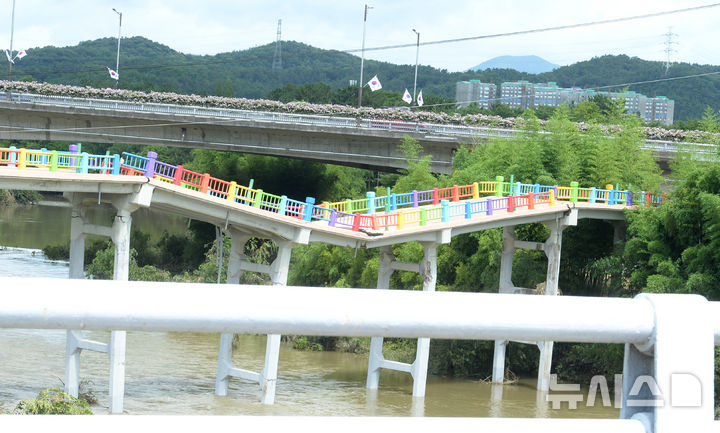 【NEWSIS】21日、集中豪雨によって曲がってしまった旧三湖橋(蔚山市中区)の様子。