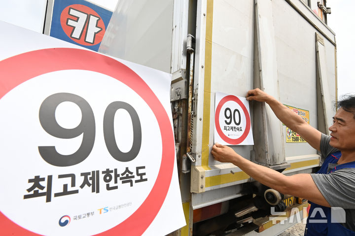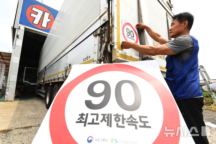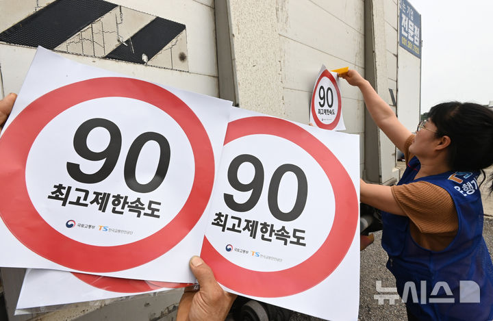 国土交通部(省に相当)と韓国交通安全公団(TS)は、きょうから総重量3.5トンを超過するトラックを対象に「最高制限速度(時速90キロ)ステッカー」を取り付ける試験事業を始めた。