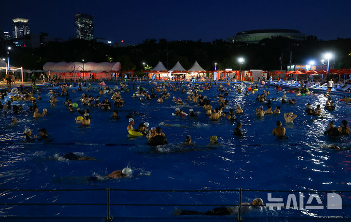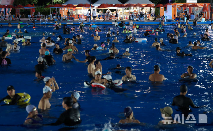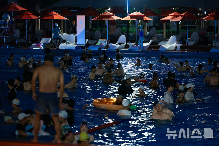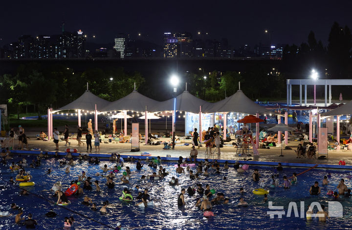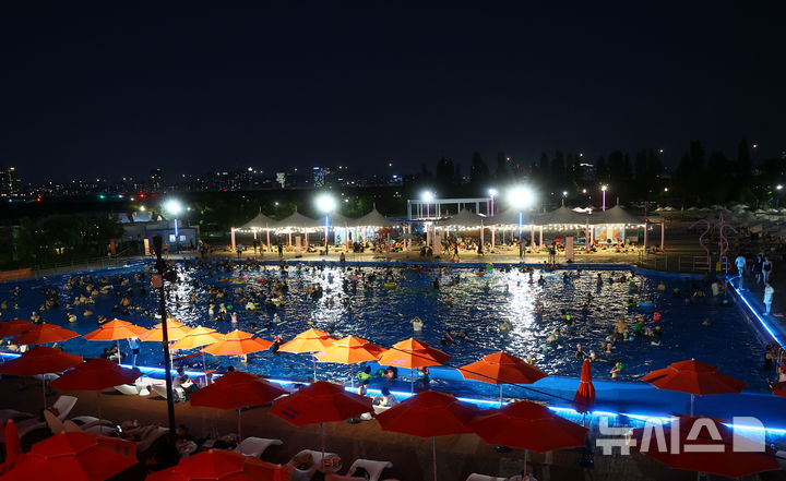 【NEWSIS】蒸し暑い日が続く24日夜、ソウル・汝矣島の漢江公園にある汝矣島プールはナイトプールを楽しむ人々でにぎわっていた。