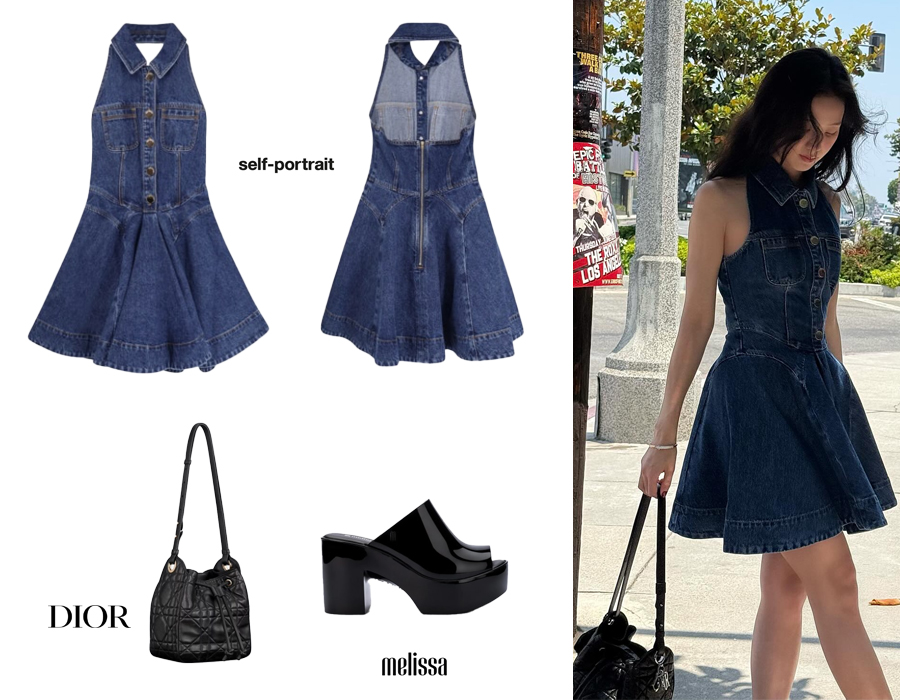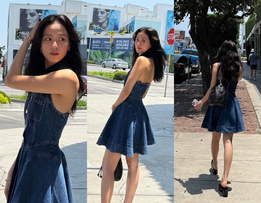 公開された写真を見ると、ジスは日差しあふれる街角でアイスコーヒーを手に、余裕あふれる雰囲気を漂わせている。ジスはノースリーブのデニム・ワンピースを着て、ナチュラルなウエーブヘア、ミニマルなアクセサリーで、洗練された夏のデイリールックを完成させた。