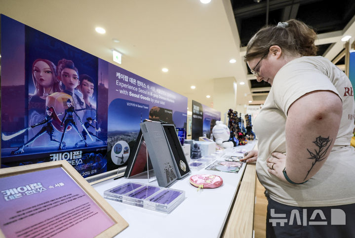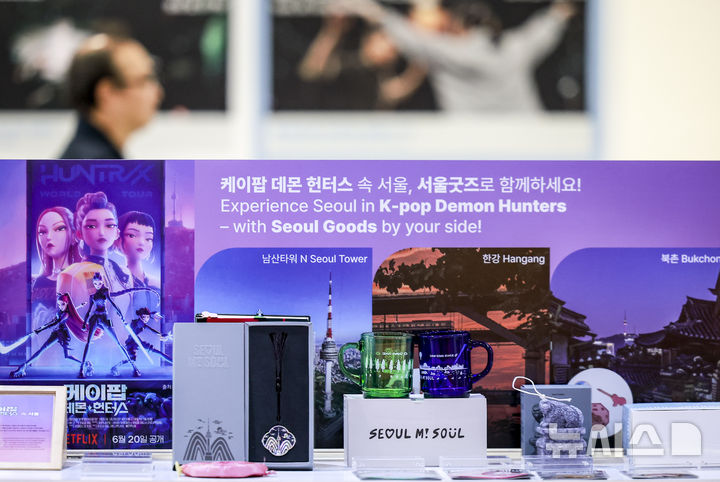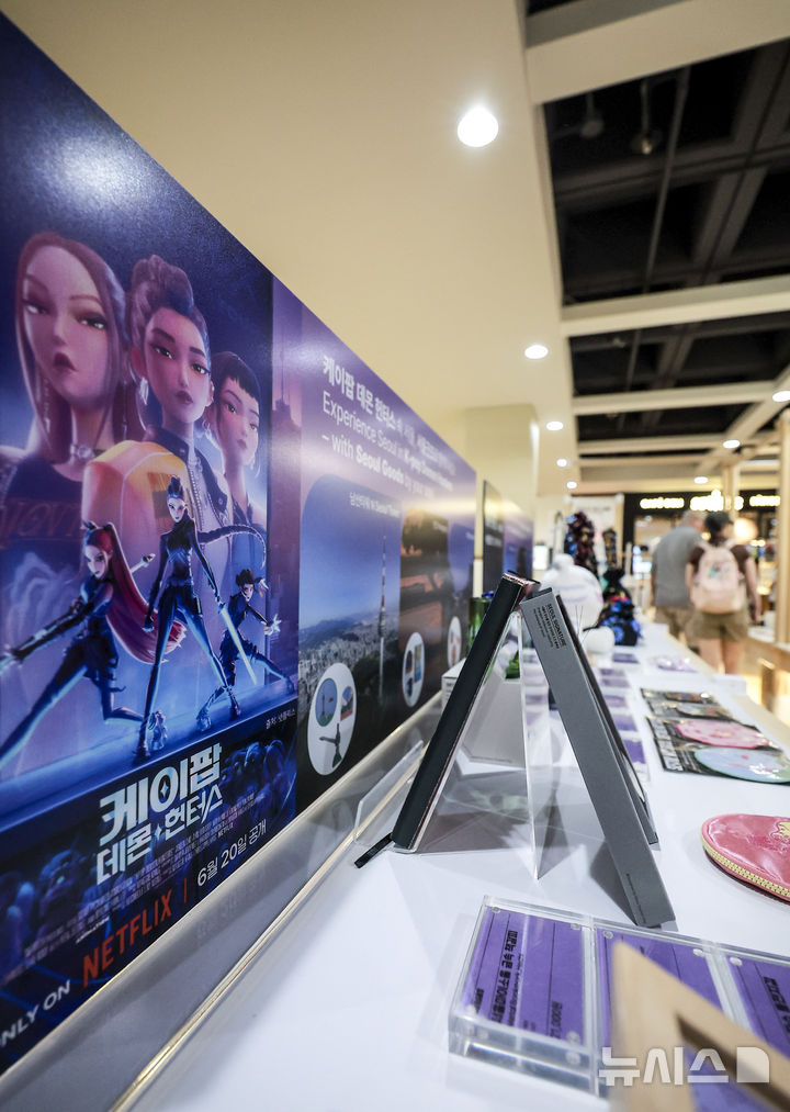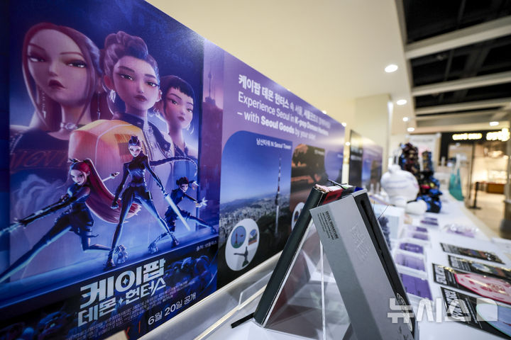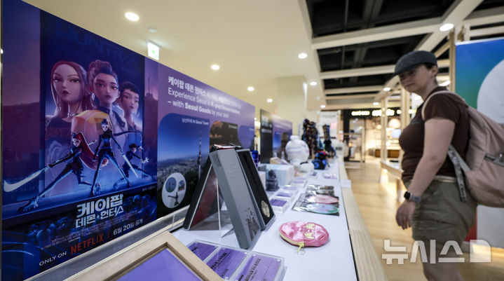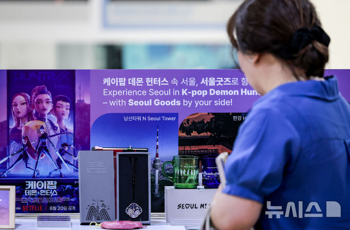 【NEWSIS】『KPOPガールズ!デーモン・ハンターズ』に登場する仮想のガールズグループ「Huntr/x」(ハントリックス)の「ゴールデン」が、米国ビルボードのメインシングルチャート「HOT100」で首位に立った12日、ソウル市鍾路区のSeoul My Soul Shopに「『KPOPガールズ!デーモン・ハンターズ』テーマのソウルグッズ・ゾーン」が開設された。