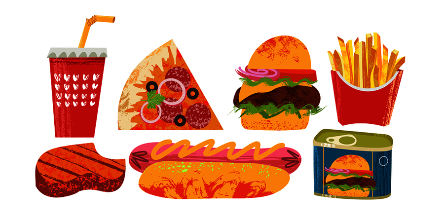 超加工食品とは、国際連合食糧農業機関(FAO)の定義によると、一般的に家庭では使用されない原材料、あるいはでき上がった製品を食べやすく、もっとおいしそうに見せるための各種添加物を含む食品を指す。そうした原材料には防腐剤、人工着色料、乳化剤、精製糖、油脂などがある。炭酸飲料、ポテトチップス、アイスクリーム、ハム、チキンナゲット、インスタントスープなどが代表的だ。