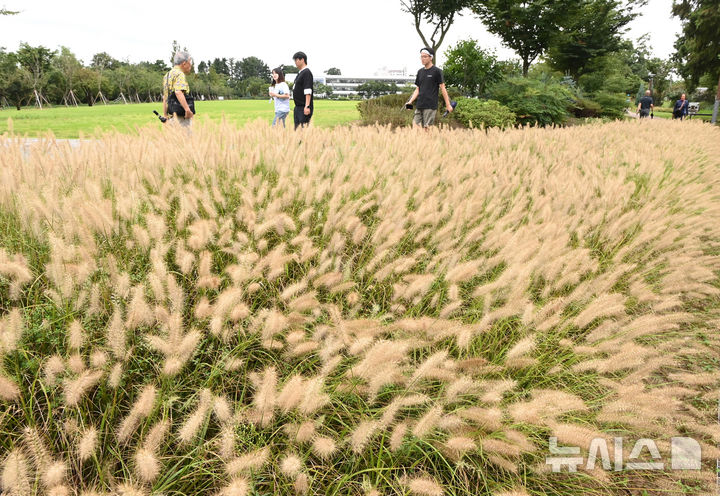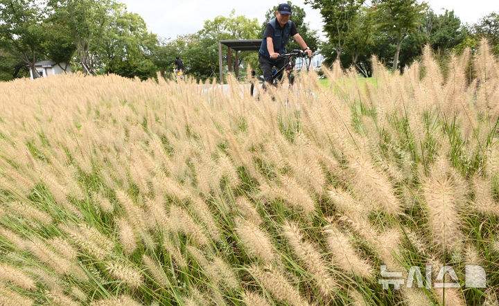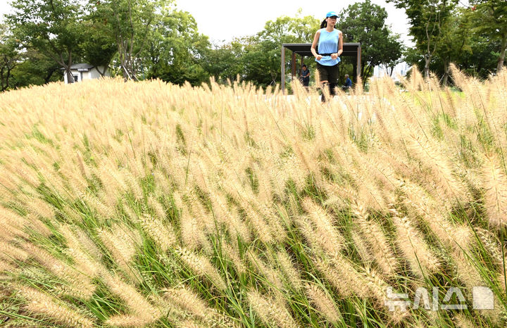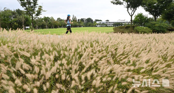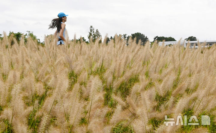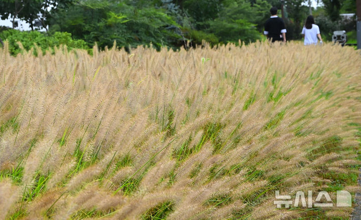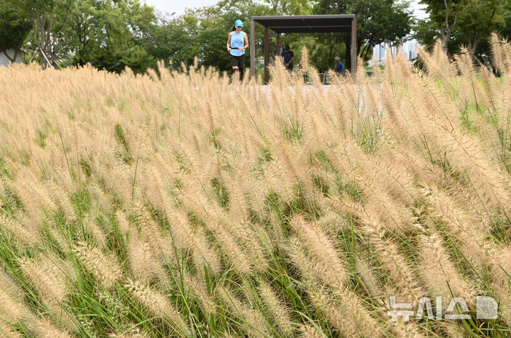 【NEWSIS】1日、水原市八達区の西湖芝生広場では、チカラシバが穂を出して秋の始まりを告げていた。