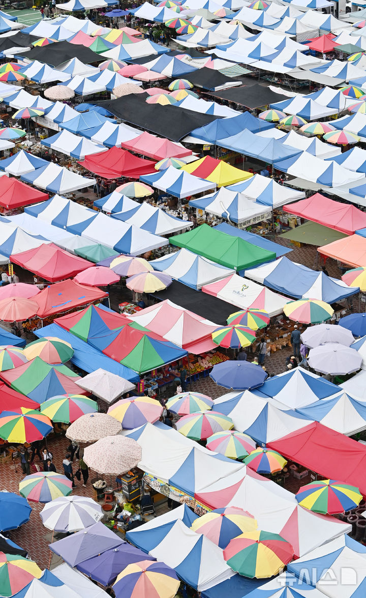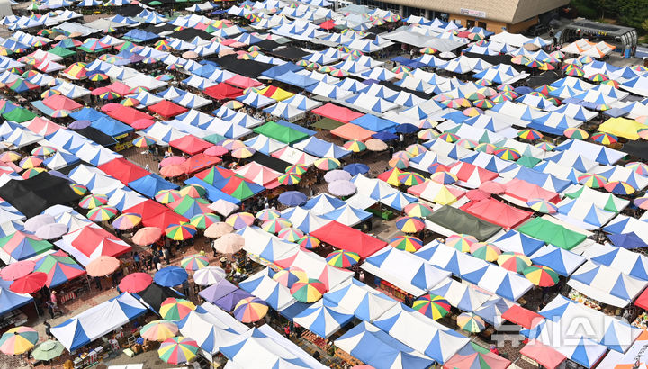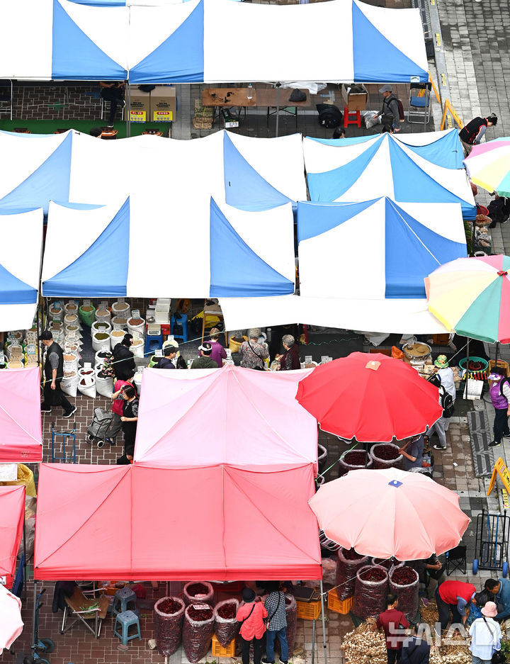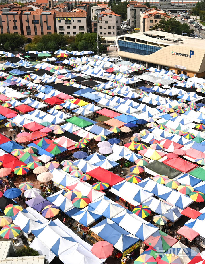 【NEWSIS】民族の大名節、秋夕(中秋節。今年は10月6日)まであと1週間と迫った29日、牡丹市場(京畿道城南市)の五日市を訪れて買い物をする市民の様子。