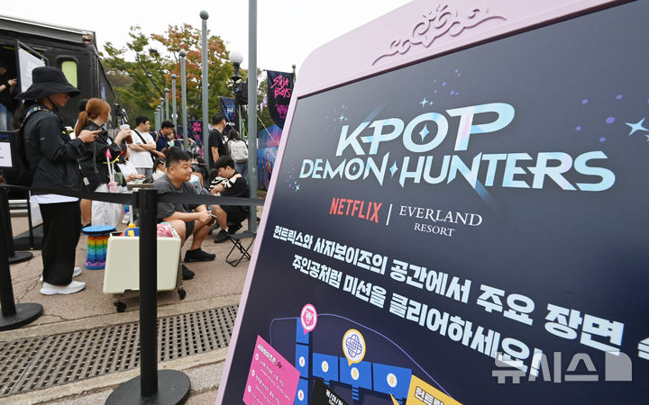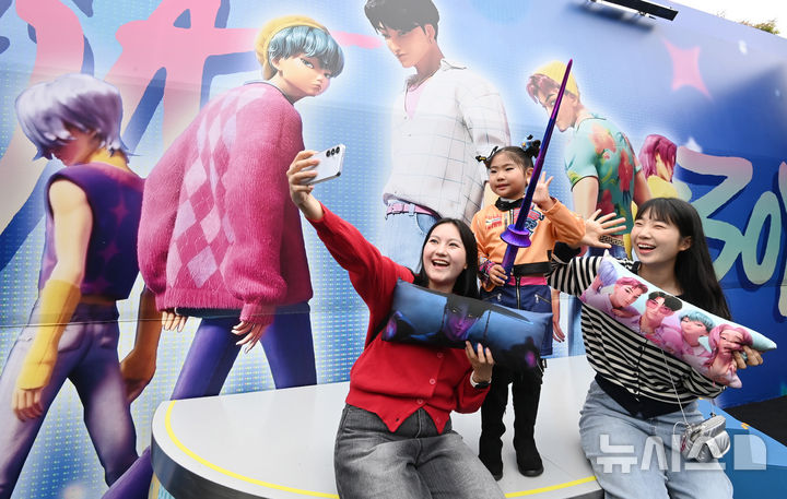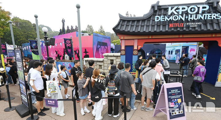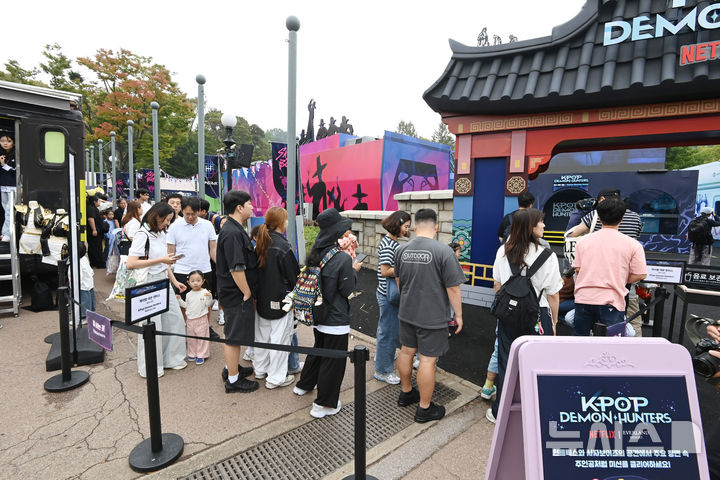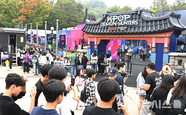 【NEWSIS】30日、京畿道竜仁市のエバーランドで『KPOPガールズ!デーモン・ハンターズ』のテーマゾーンを体験する人々の様子。