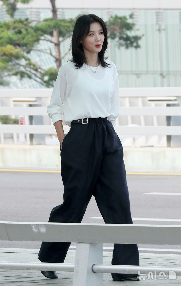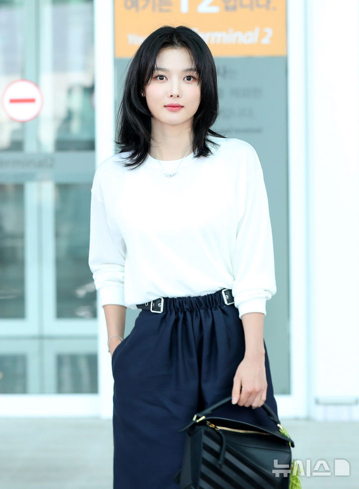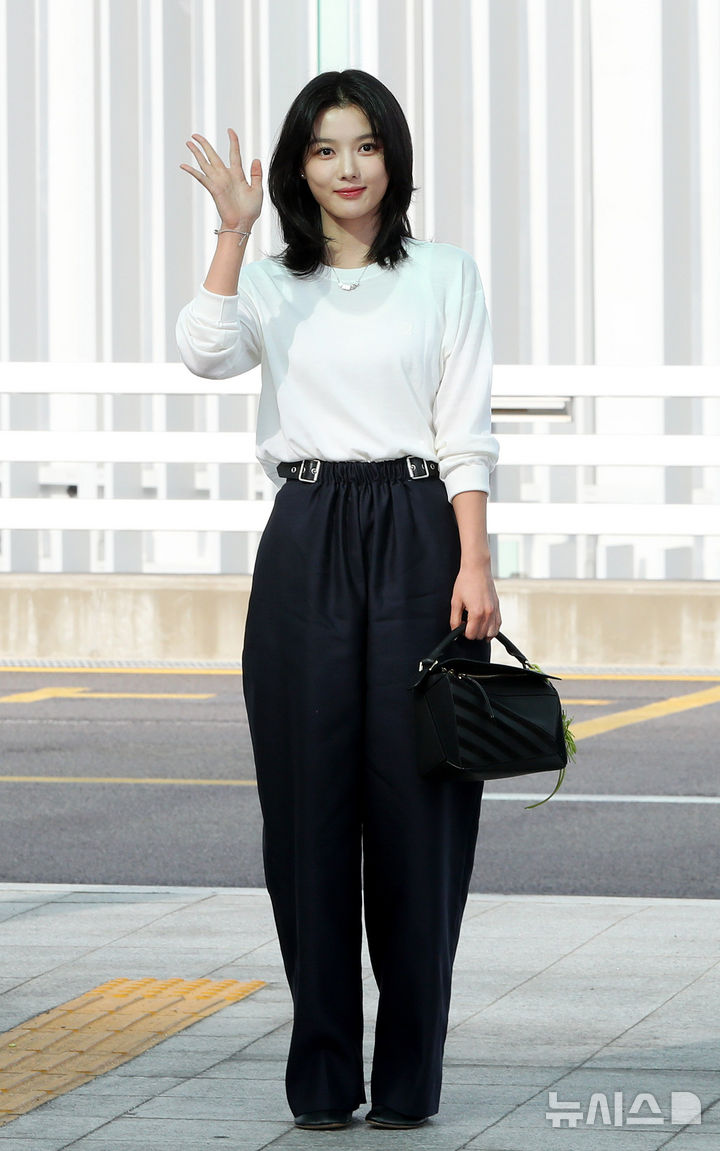女優キム・ユジョンが2日、LOEWEの2026年SSコレクションに出席するため、仁川国際空港からフランス・パリに向かった。