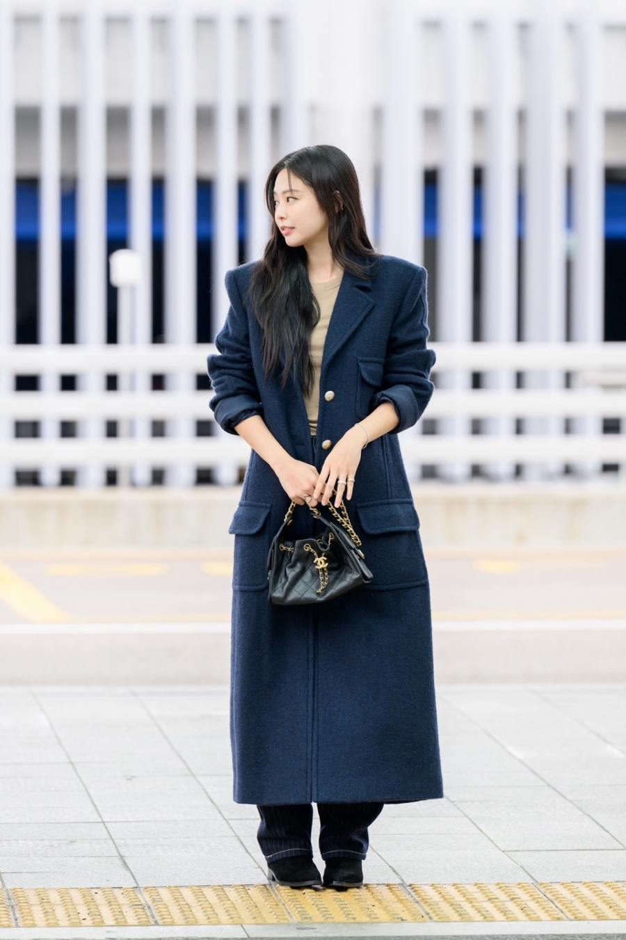この日のジェニーはシックなロングコートで現れ、視線をさらった。