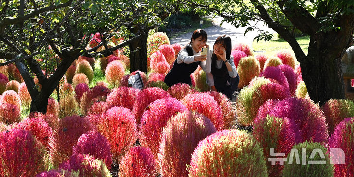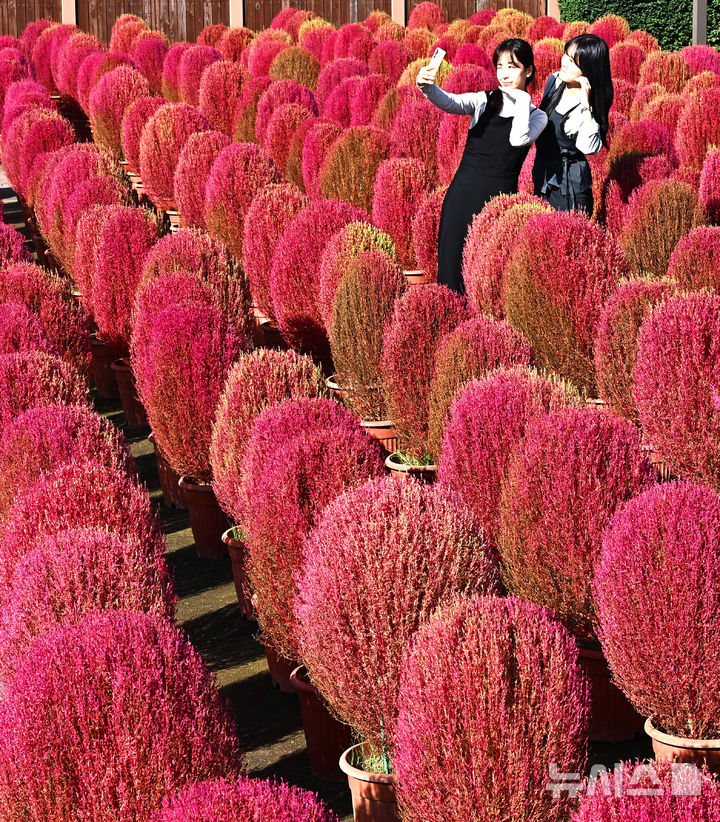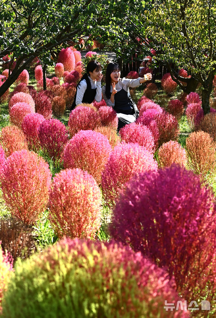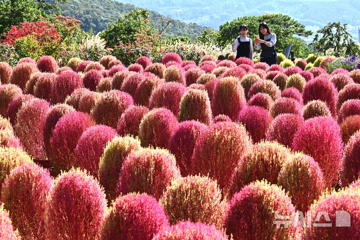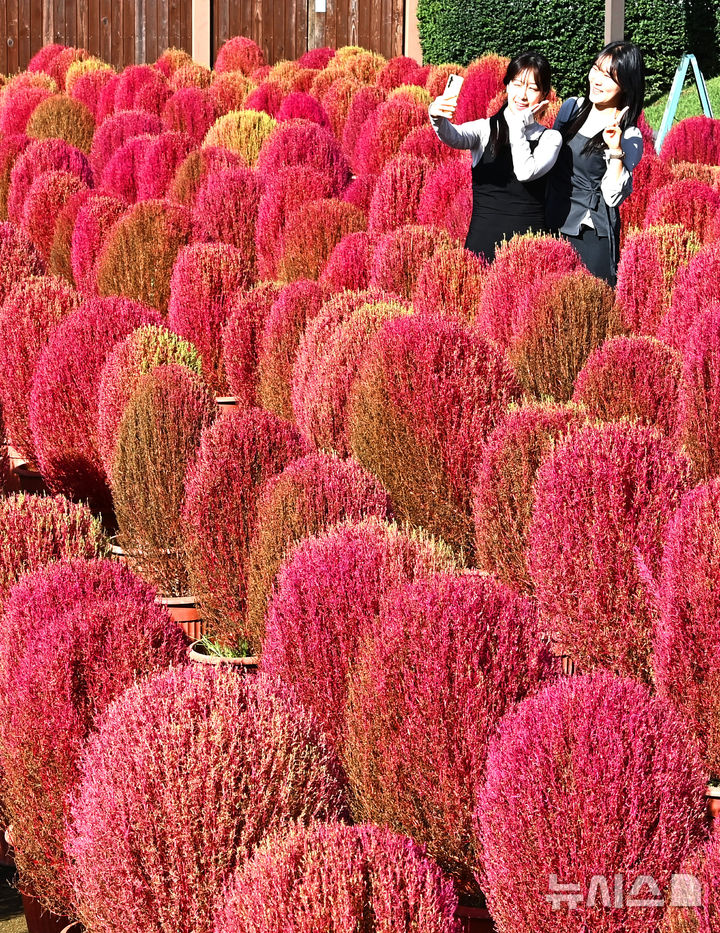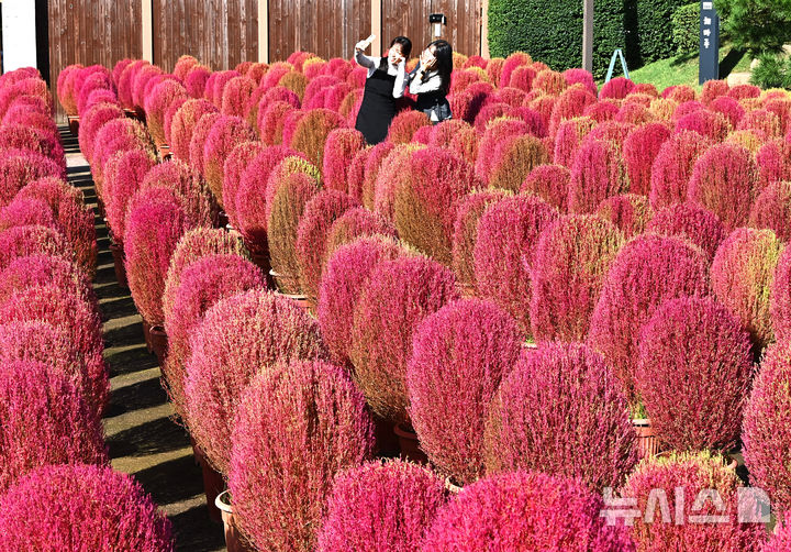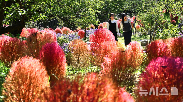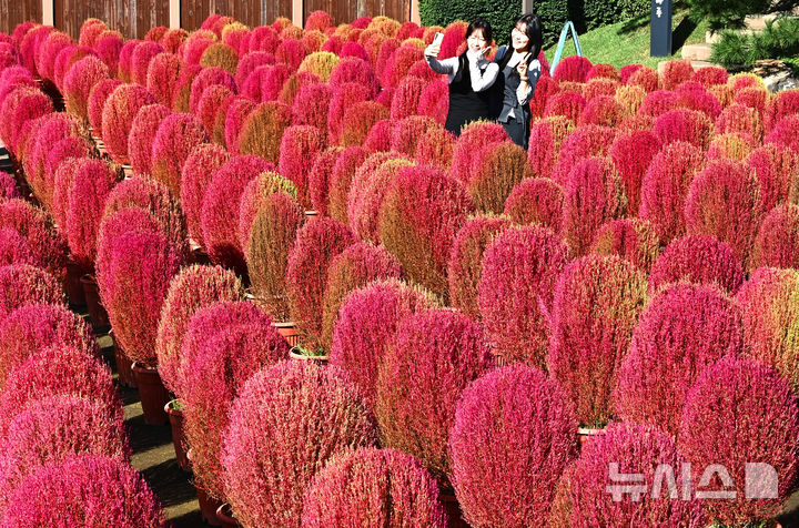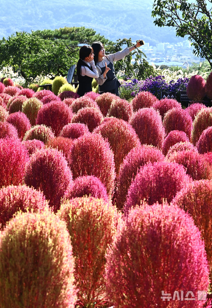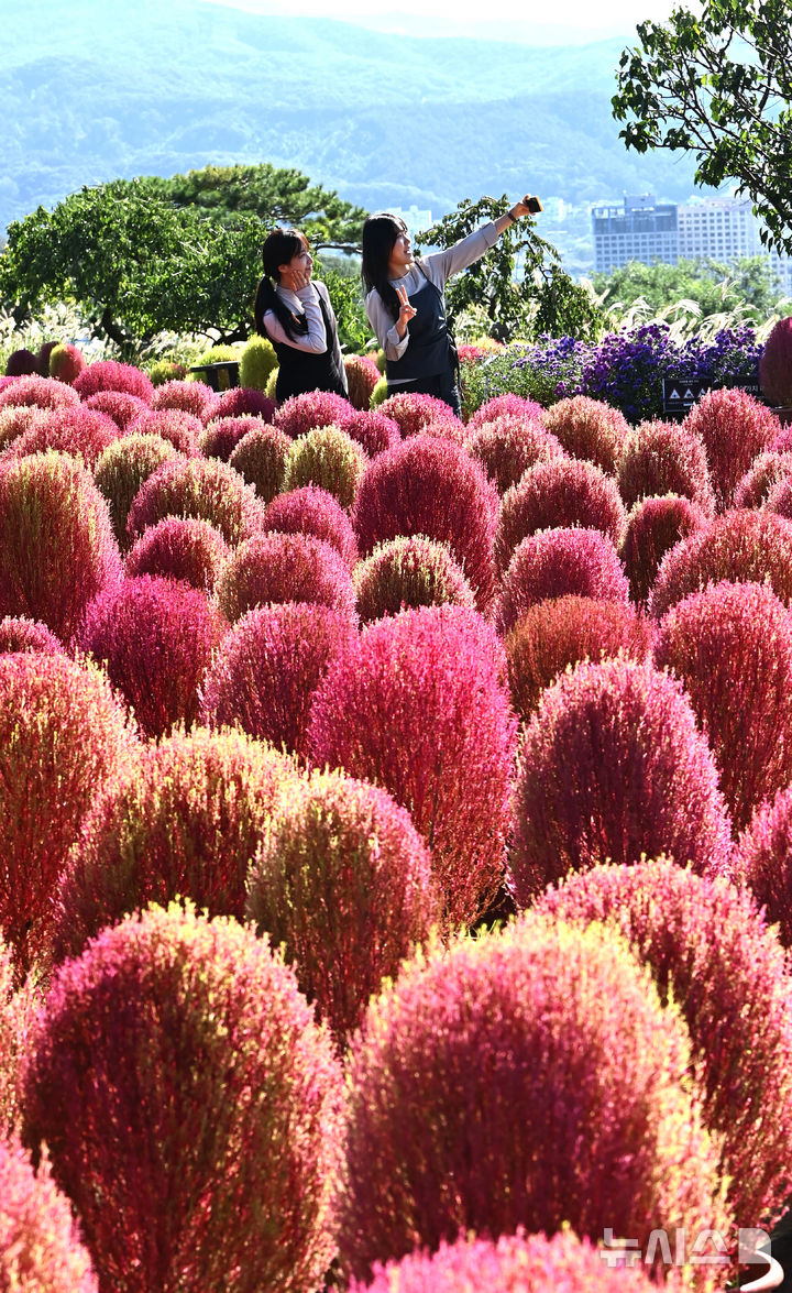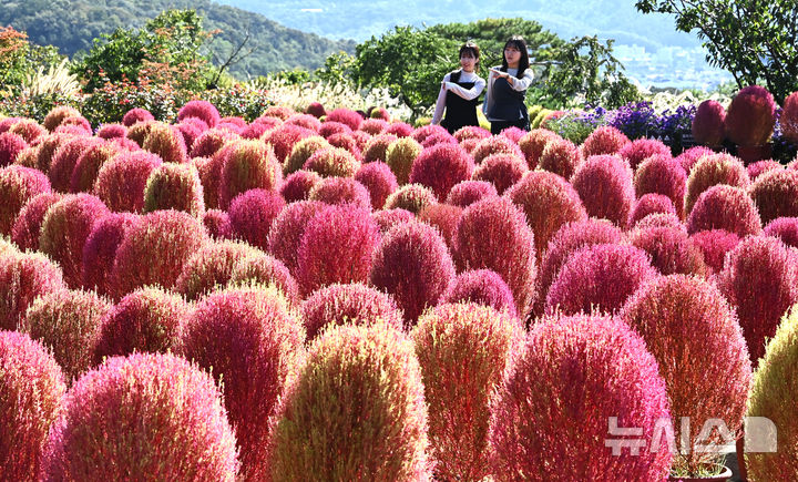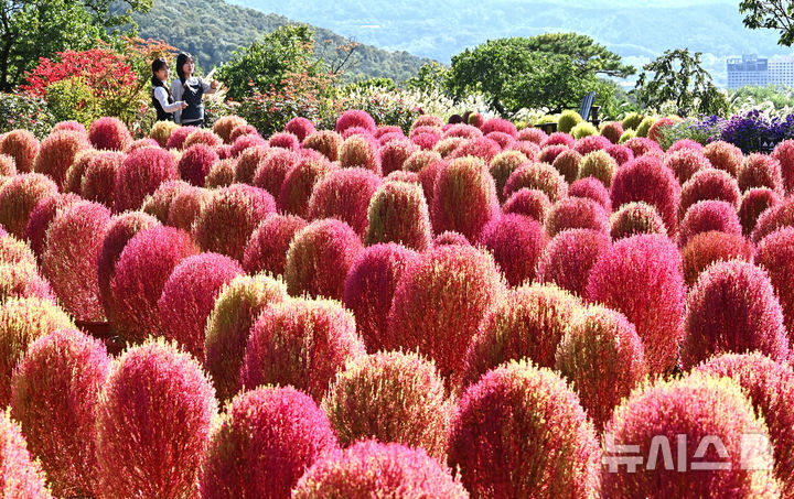 【NEWSIS】澄みきった秋の天気となった17日、京畿道竜仁市にあるエバーランドの「空の庭園の道」では、ホウキグサが赤く色付いていた。
