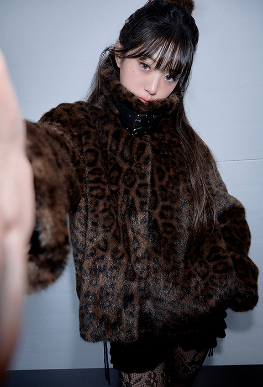 グラビアのウォニョンは、レオパード柄のフェイクファージャケットでトレンディ&アーバンなアウトフィットに、クリスマス・ムードたっぷりのノルディック柄カーディガンで温かくてラブリーなコーディネートに仕上がっている。