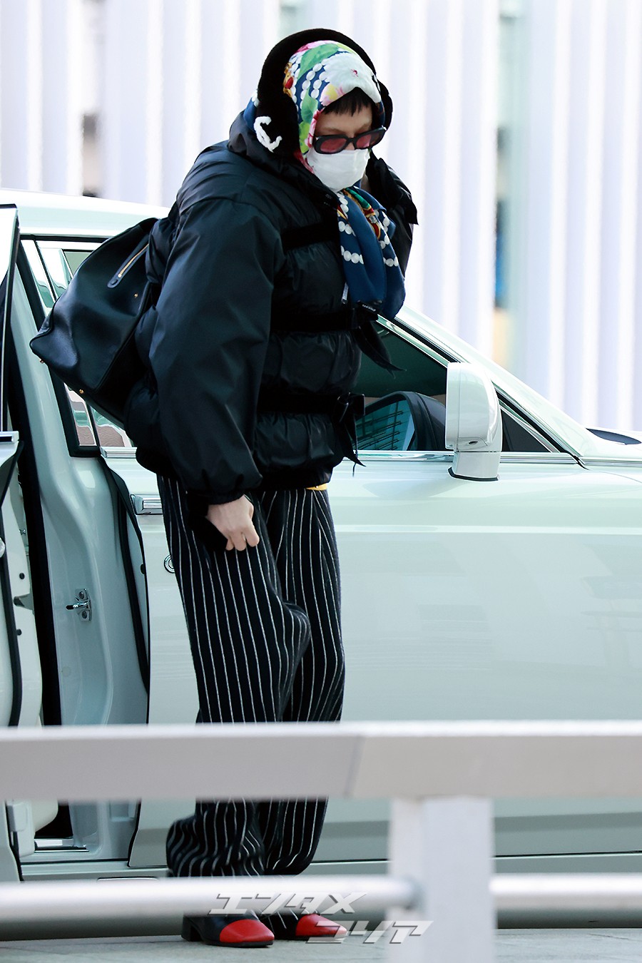 ◆【写真】G-DRAGON「高級ブランドスカーフ×イヤーマフ」…ヒップでかわいい空港ファッション