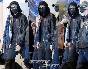 【フォト】SUGA、キャップ&マスクで顔を隠して入国…シックな黒コーデ