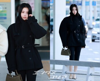【フォト】ILLITユナ、真冬にバイカーパンツ…オールブラックのシックなフライトコーデ