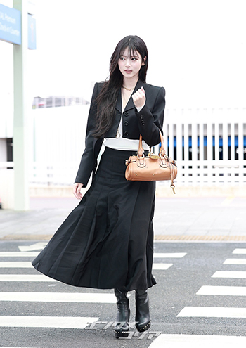 【フォト】フィッシュテールスカート姿のLE SSERAFIMウンチェ、美脚見せつけ渡仏