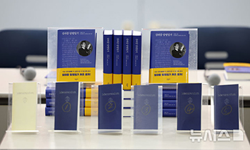 【NEWSIS】22日、ソウル市麻浦区の延世大学金大中図書館で『金大中亡命日記』出版記念記者懇談会が開かれた。写真は、初公開の金大中(キム・デジュン)元大統領の日記を収めた全6巻の複製本手帳(1972..