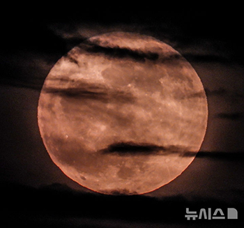 【NEWSIS】11日午後、済州特別自治道済州市の東の空に6月の満月「ストロベリームーン(Strawberry Moon)」が出ていた。