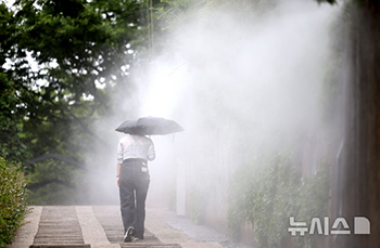【NEWSIS】二十四節季の一つで夏の気温が到来し始める「小満」の21日、大邱市中区の「青羅の丘」に、暑さを冷ましてくれるクーリングフォグが登場した。