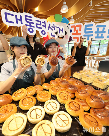 【NEWSIS】第21代韓国大統領選挙まであと十二日に迫った22日午前、仁川選挙管理委員会とアンス・ベーカリーが記票の模様入りのパンを仁川市弥鄒忽区の同ベーカリー店舗で発売し、投票参加キャンペーンを繰..