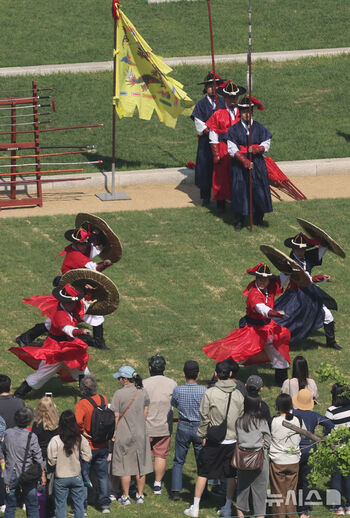 【NEWSIS】朝鮮時代の兵書『武芸図譜通志』を基にした三軍府の伝統武芸演武が18日、ソウル市鍾路区の「六曹マダン」で行われた。旗槍・こん棒・本国剣・藤牌・月刀・双剣など9種の伝統武芸が披露される。..