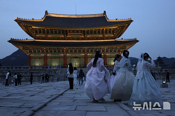 【NEWSIS】8日、ソウル市鍾路区の景福宮を訪れ、夜間観覧をする人々。韓国国家遺産庁では6月15日まで、2025年上半期の景福宮夜間観覧を実施している。
