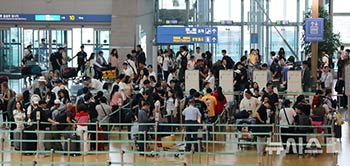 【NEWSIS】秋夕(中秋節。今年は9月17日)の連休があすに迫った13日、仁川国際空港第1旅客ターミナルは利用客で混雑していた。仁川空港公社の予測によると、秋夕の連休期間(9月13日-18日)には1..
