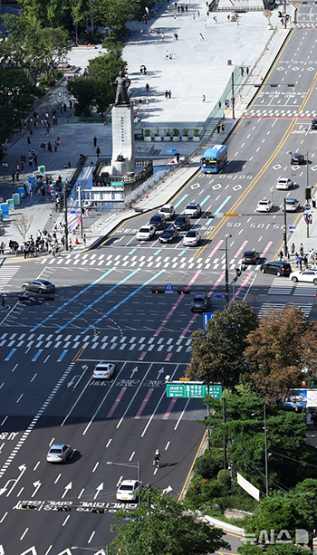 秋夕(中秋節。今年は9月17日)の連休初日となる14日、ソウル市中区の世宗大路は閑散とした様子だった。
