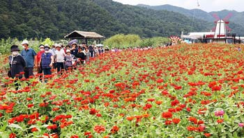 16日午後、秋夕(中秋節。今年は9月17日)の連休を迎えて大勢の人が江原道平昌郡平昌邑の平昌川沿いで開かれた「2024平昌百日紅祭り」の会場を訪れ、サルスベリが開花した花畑の様子を楽しんだ。今年の百日..