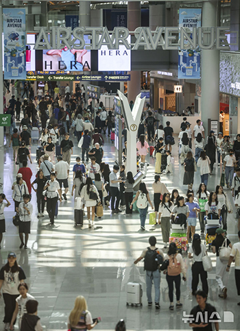 【NEWSIS】10日、利用客で混雑している仁川国際空港第1旅客ターミナル入国場の様子。仁川国際空港公社は、今回の秋夕(中秋節。今年は9月17日)連休の「特別交通対策」期間に当たる13日から18日に..