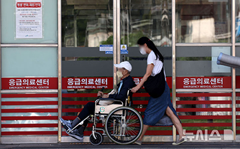 【NEWSIS】「秋夕(チュソク=中秋節、今年は9月17日)連休非常救急対応週間」の運営が始まった11日午前、ソウル市内のある大学病院救急医療センターを訪れた車いすの患者と介助者。
